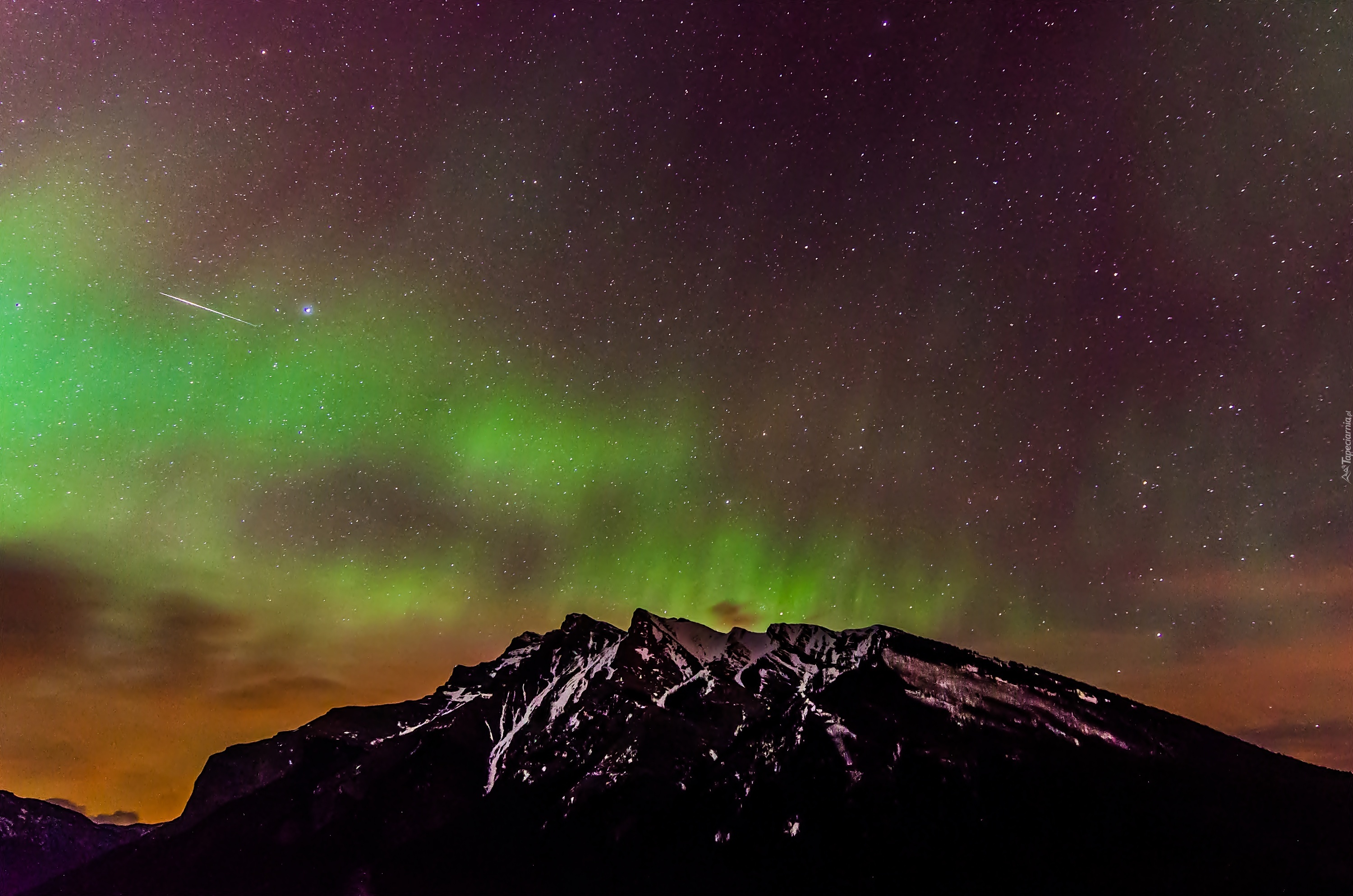 Edytor tapety: Zorza polarna, Góra, Gwiazdy, Noc