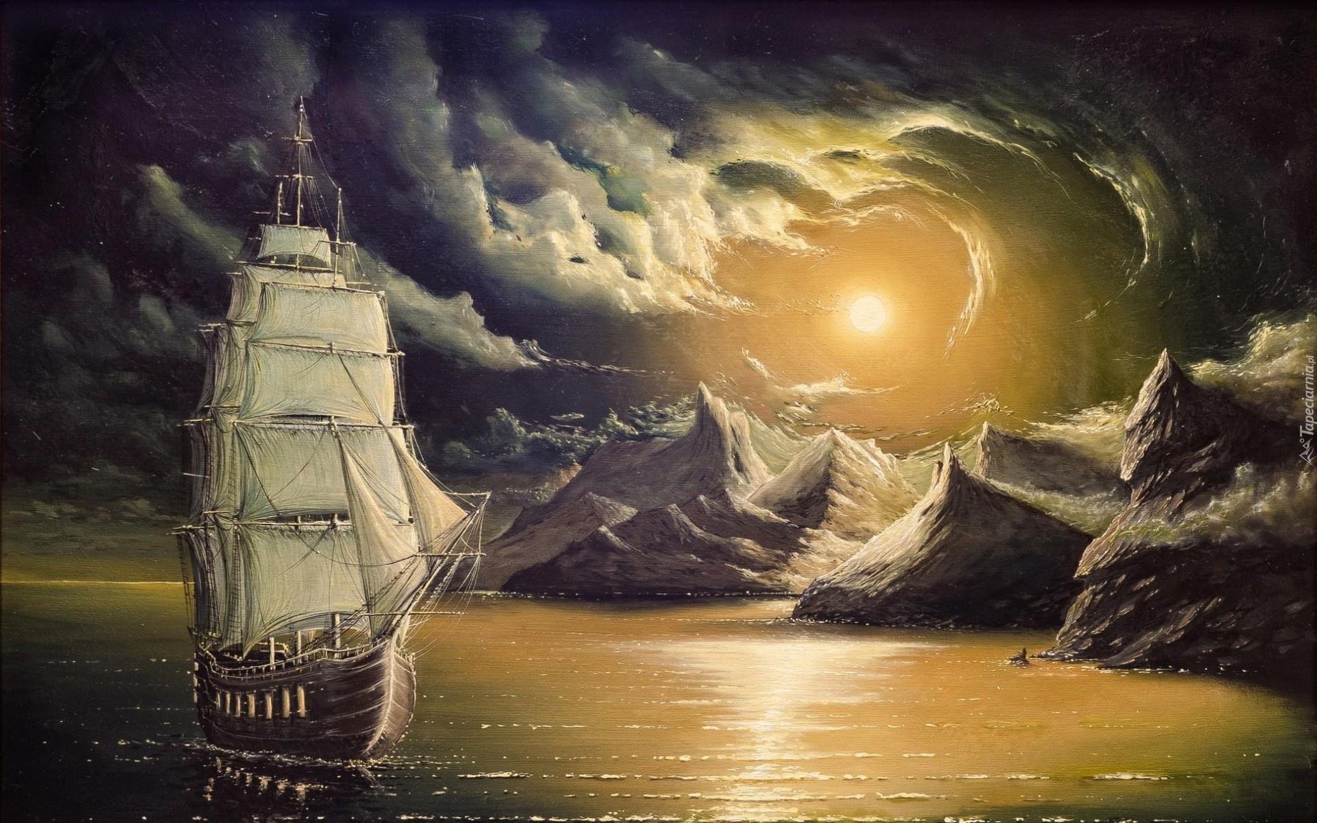 Edytor tapety: Malarstwo, Obraz, Żaglowiec