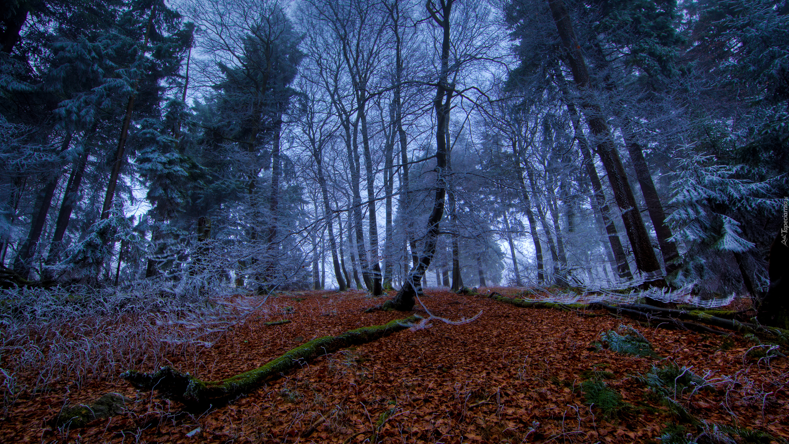 Edytor tapety: Las, Jesień, Opadłe, Liście, Oszronione, Drzewa