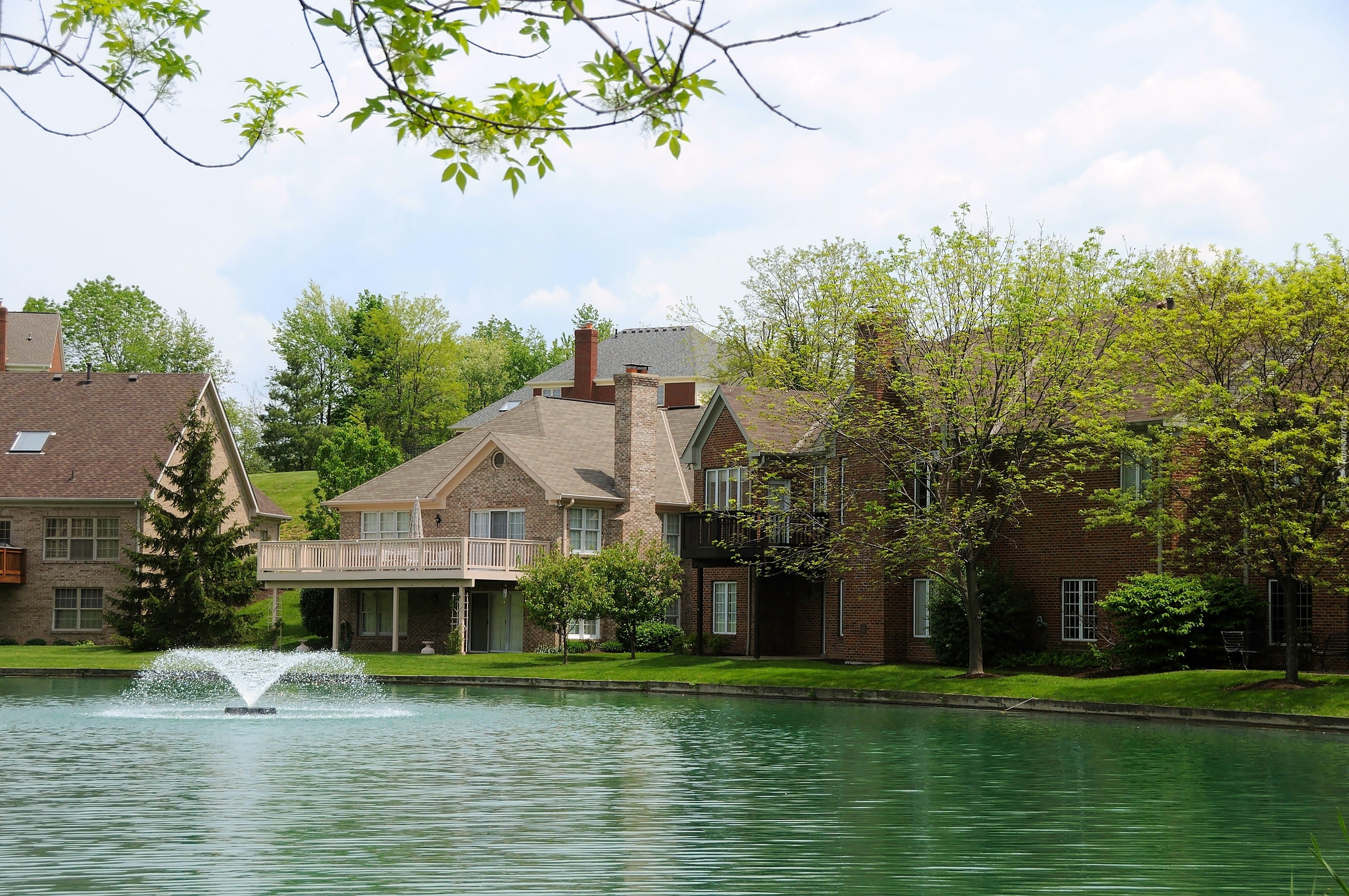 Edytor tapety: Dom, Drzewa, Staw, Wodotrysk