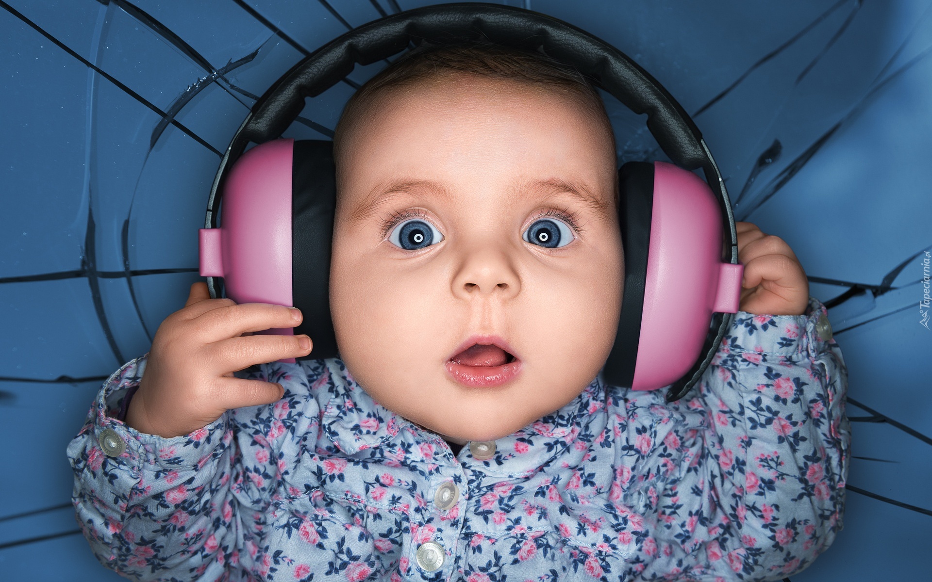 Edytor tapety: Dziecko, Słuchawki, Twarz, Duże, Oczy