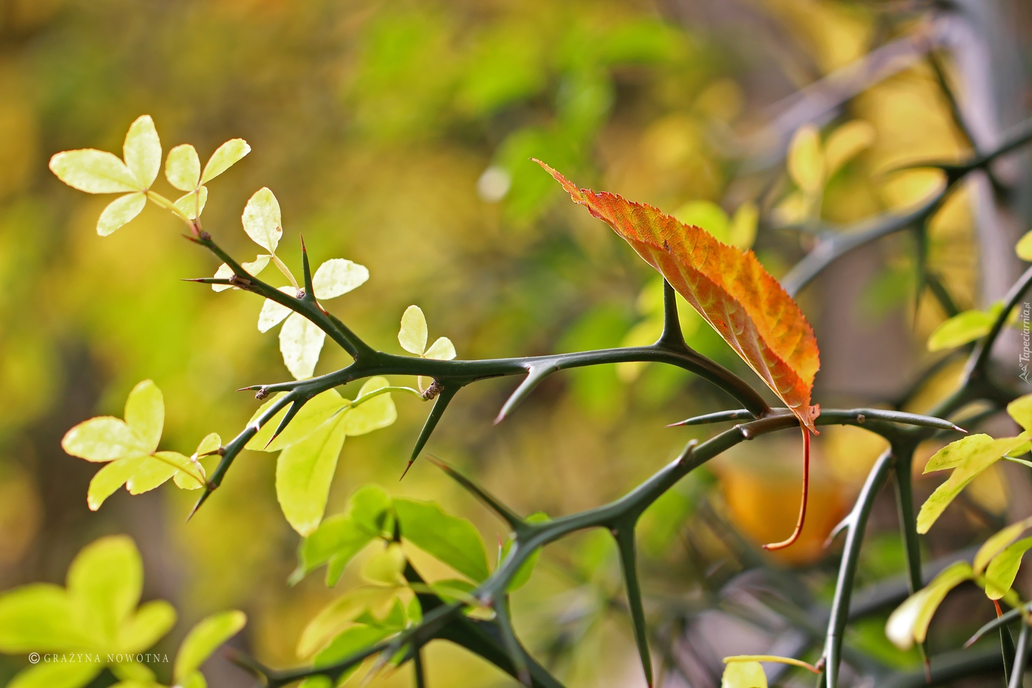 Edytor tapety: Jesienne, Liście, Gałązki, Kolce