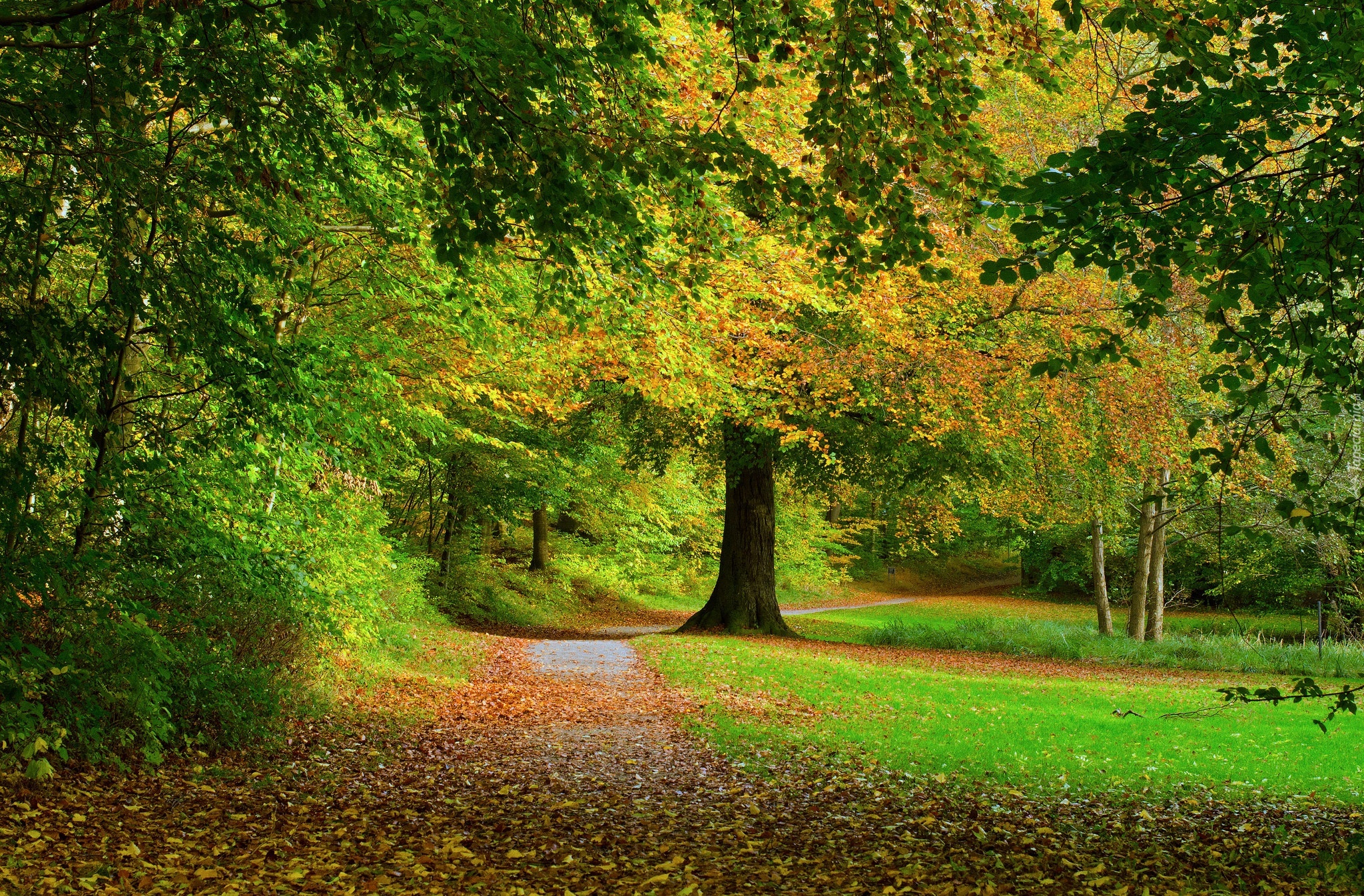 Edytor tapety: Jesień, Park, Droga, Drzewa