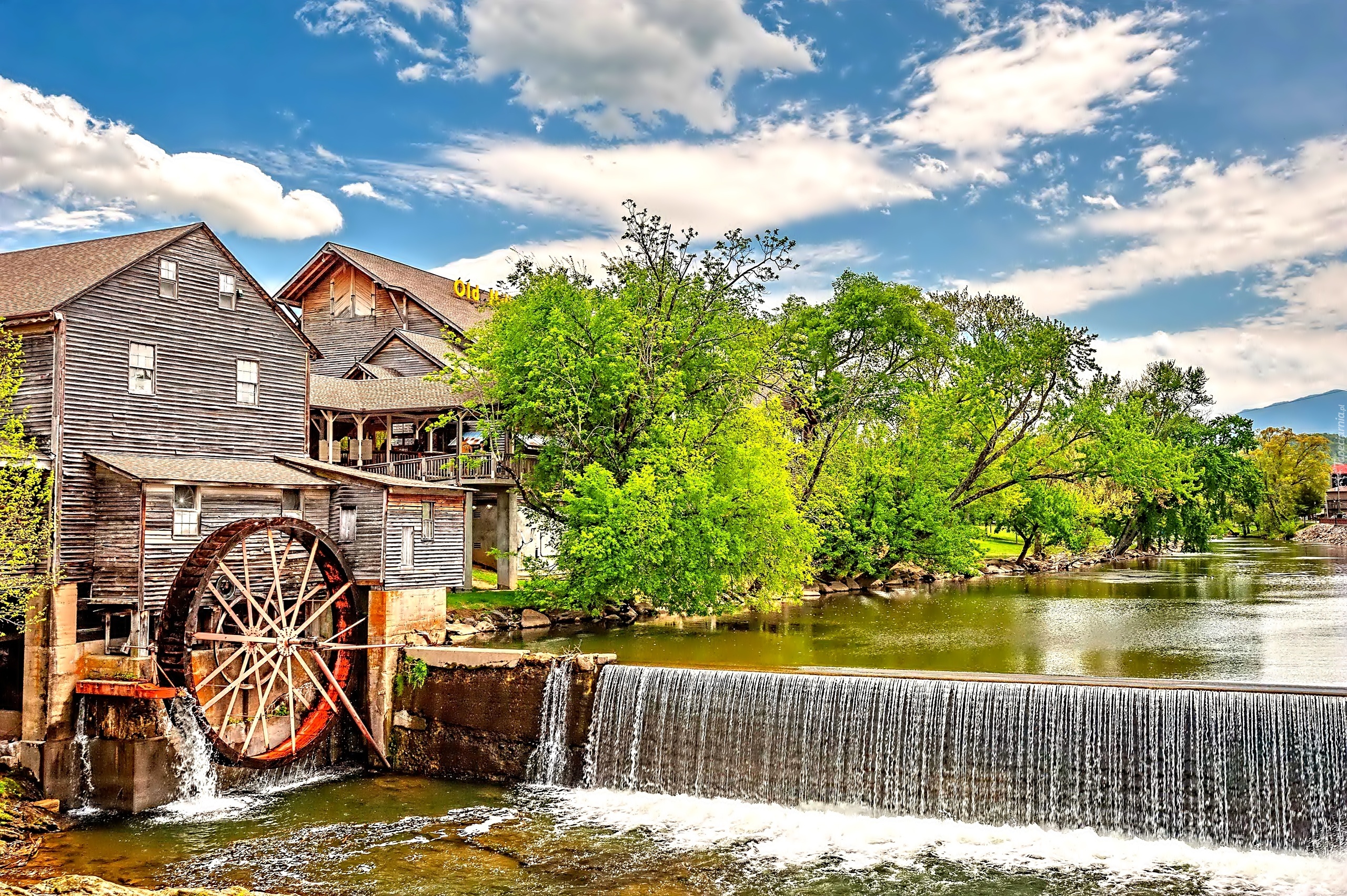 Edytor tapety: Młyn Wodny, Rzeka, Dom, Drzewa