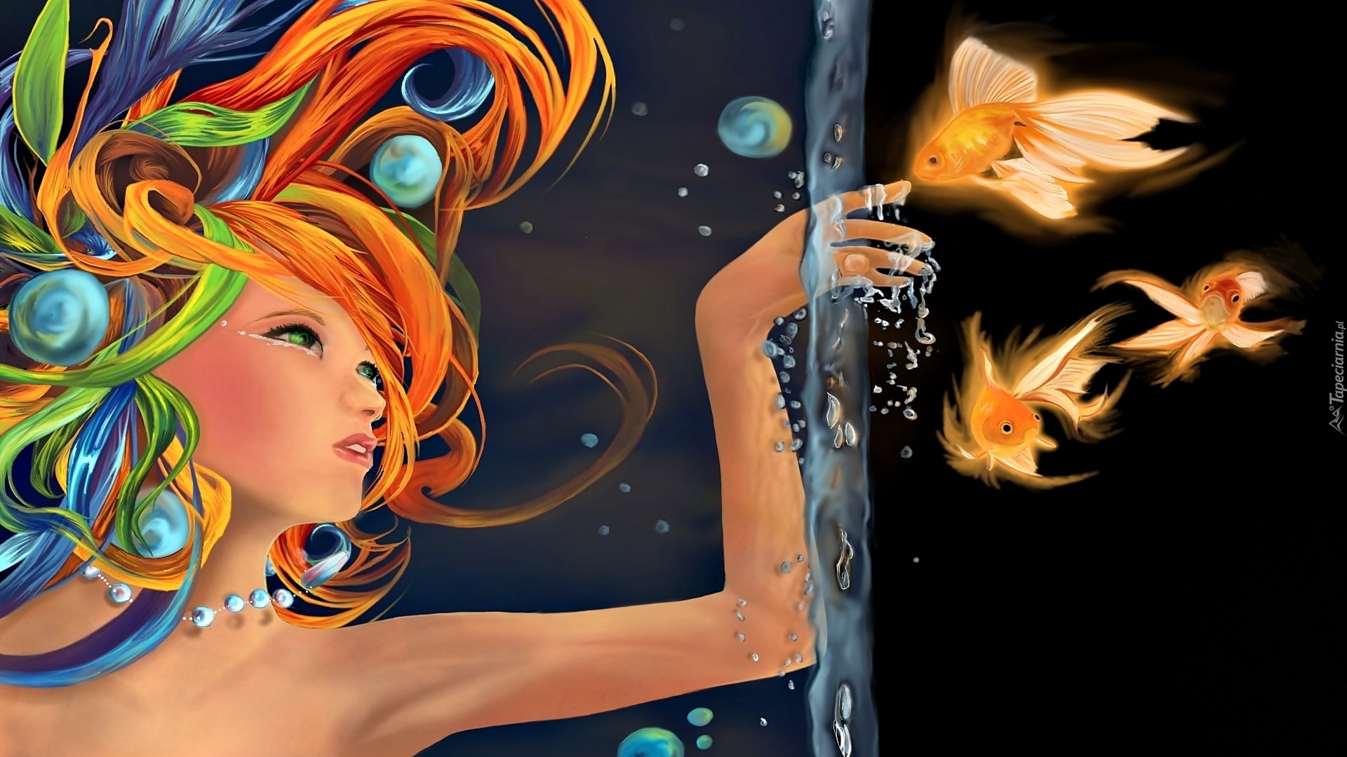 Edytor tapety: Grafika, Dziewczyna, Woda, Ryby, Welonki