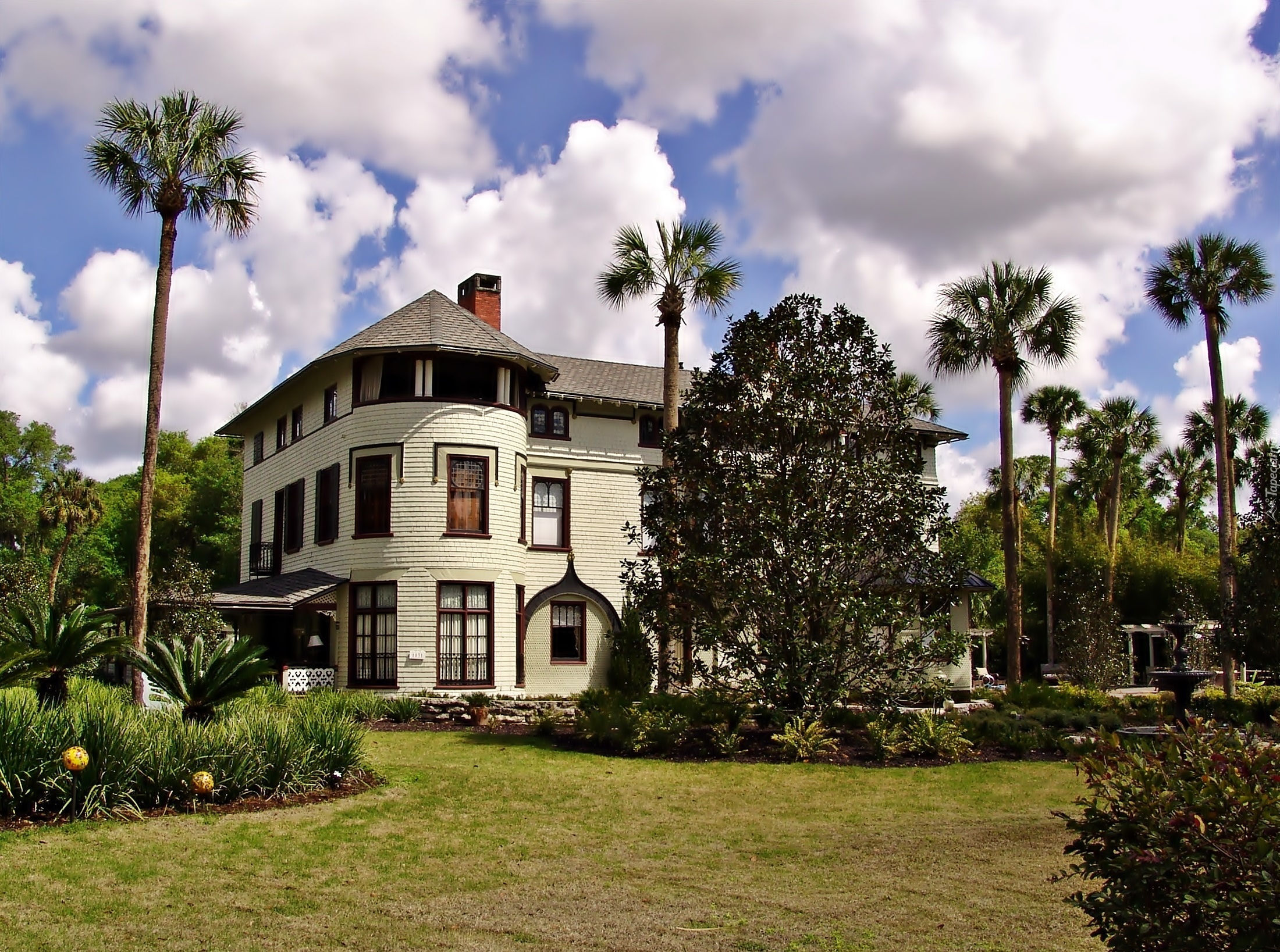 Edytor tapety: Dom, Ogród, Palmy, Obłoki