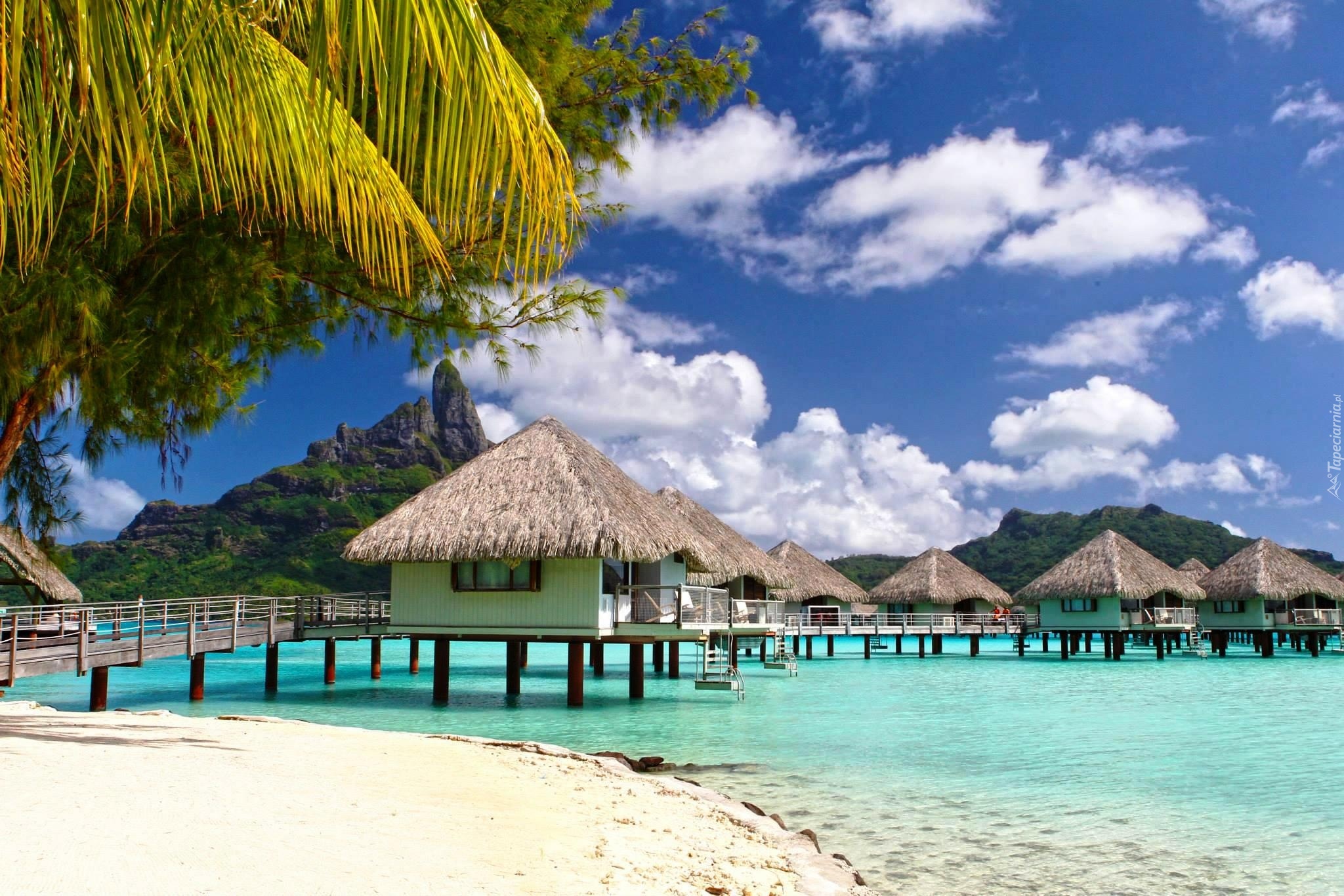 Edytor tapety: Domki, Morze, Plaża, Tropiki