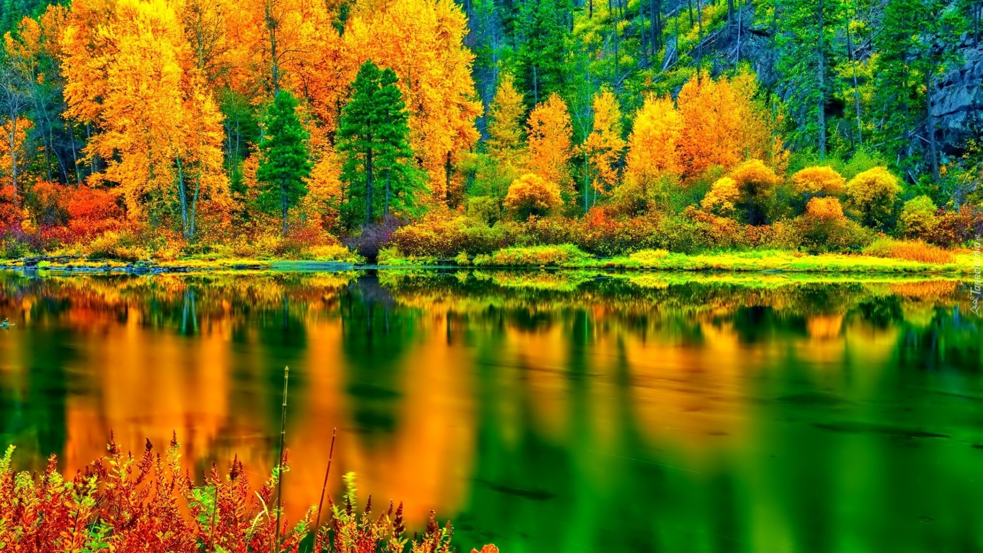 Edytor tapety: Las, Jezioro, Kolorowe, Liście