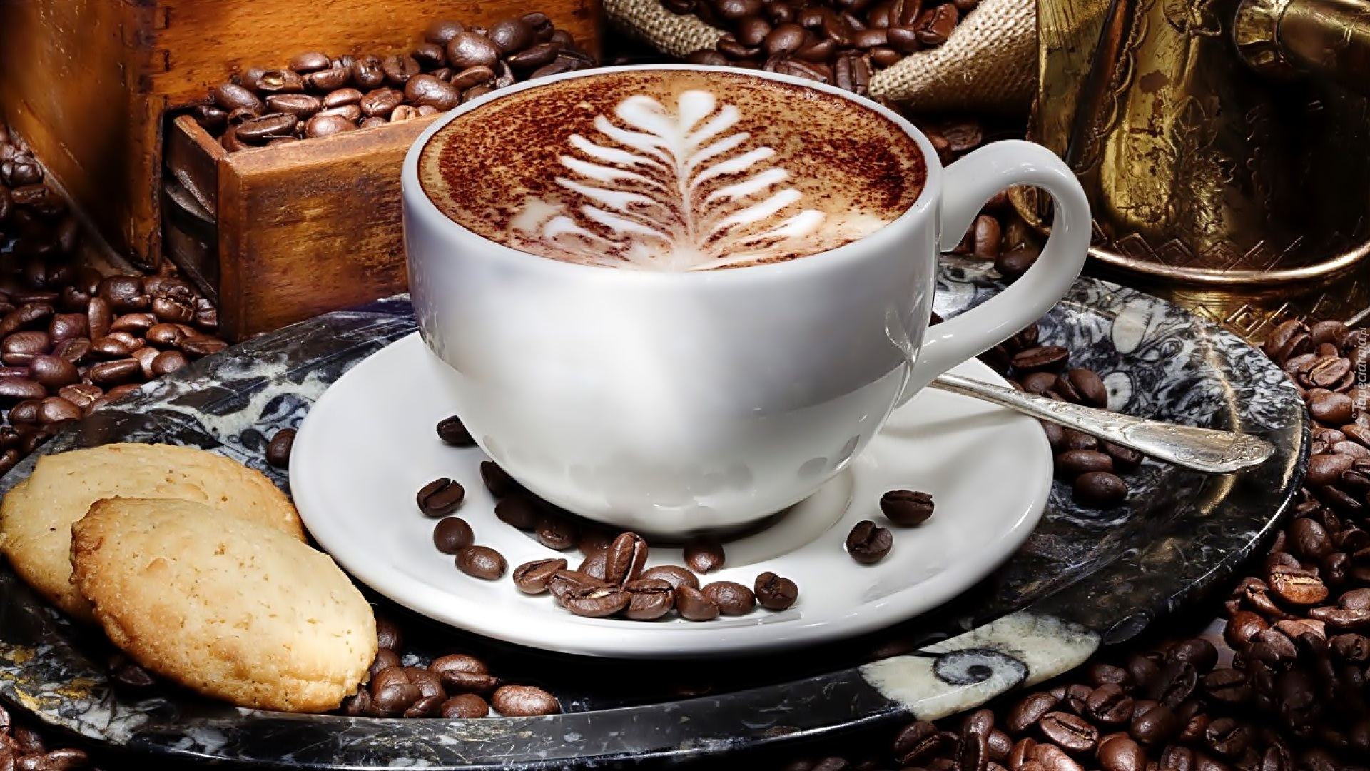 Edytor tapety: Filiżanka, Rozsypana, Kawa, Talerzyk
