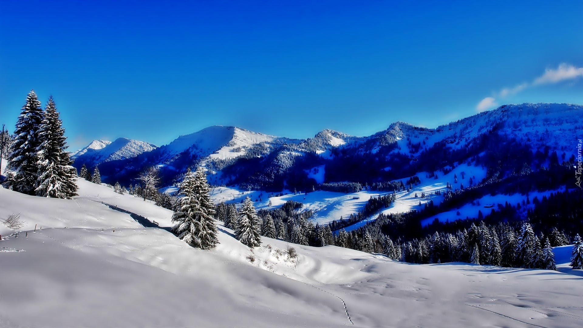 Edytor tapety: Zima, Góry, Ośnieżone, Świerki