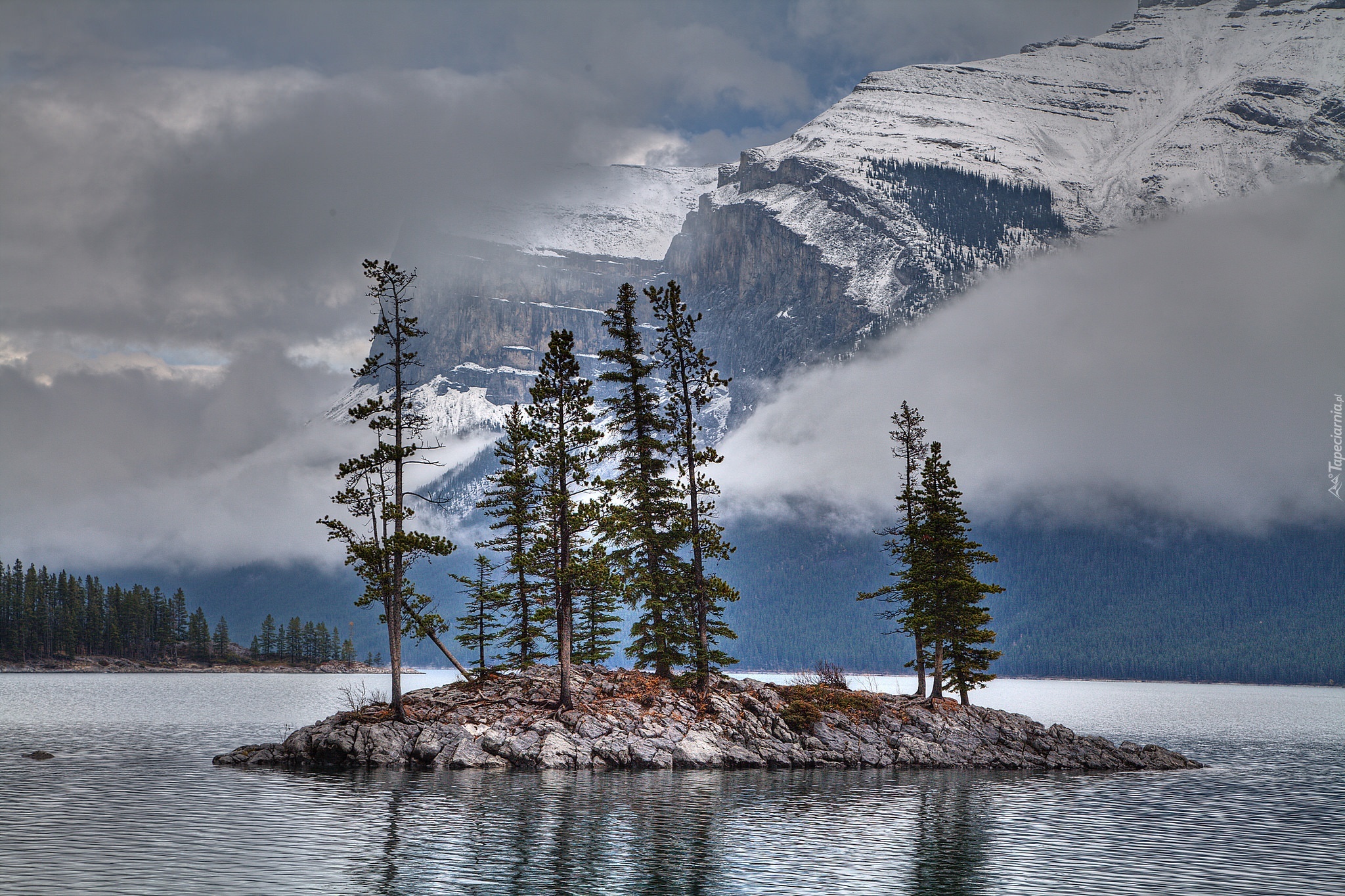 Edytor tapety: Góry, Jezioro, Wysepka, Zima