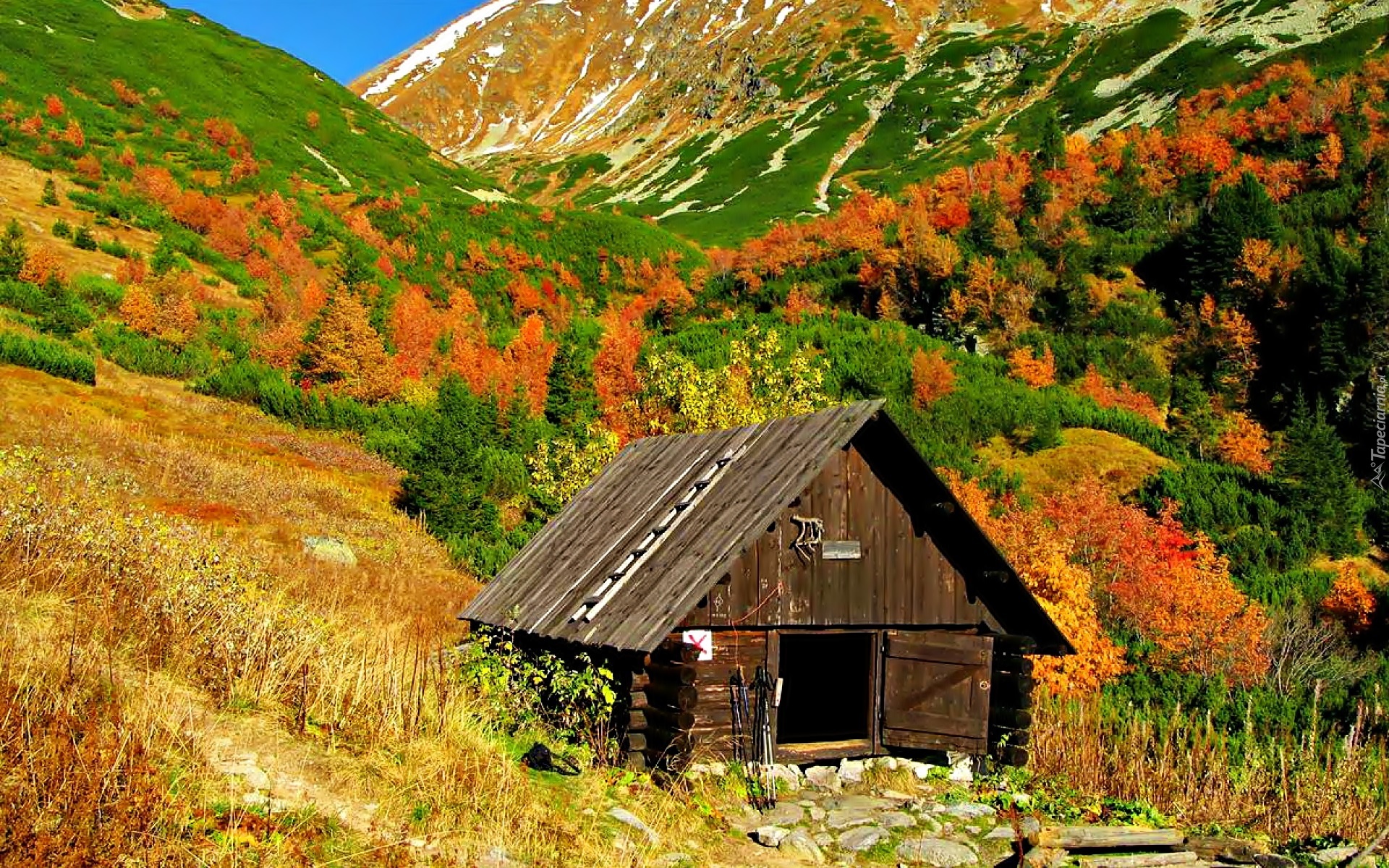 Edytor tapety: Jesień, Góry, Drewniana, Chata