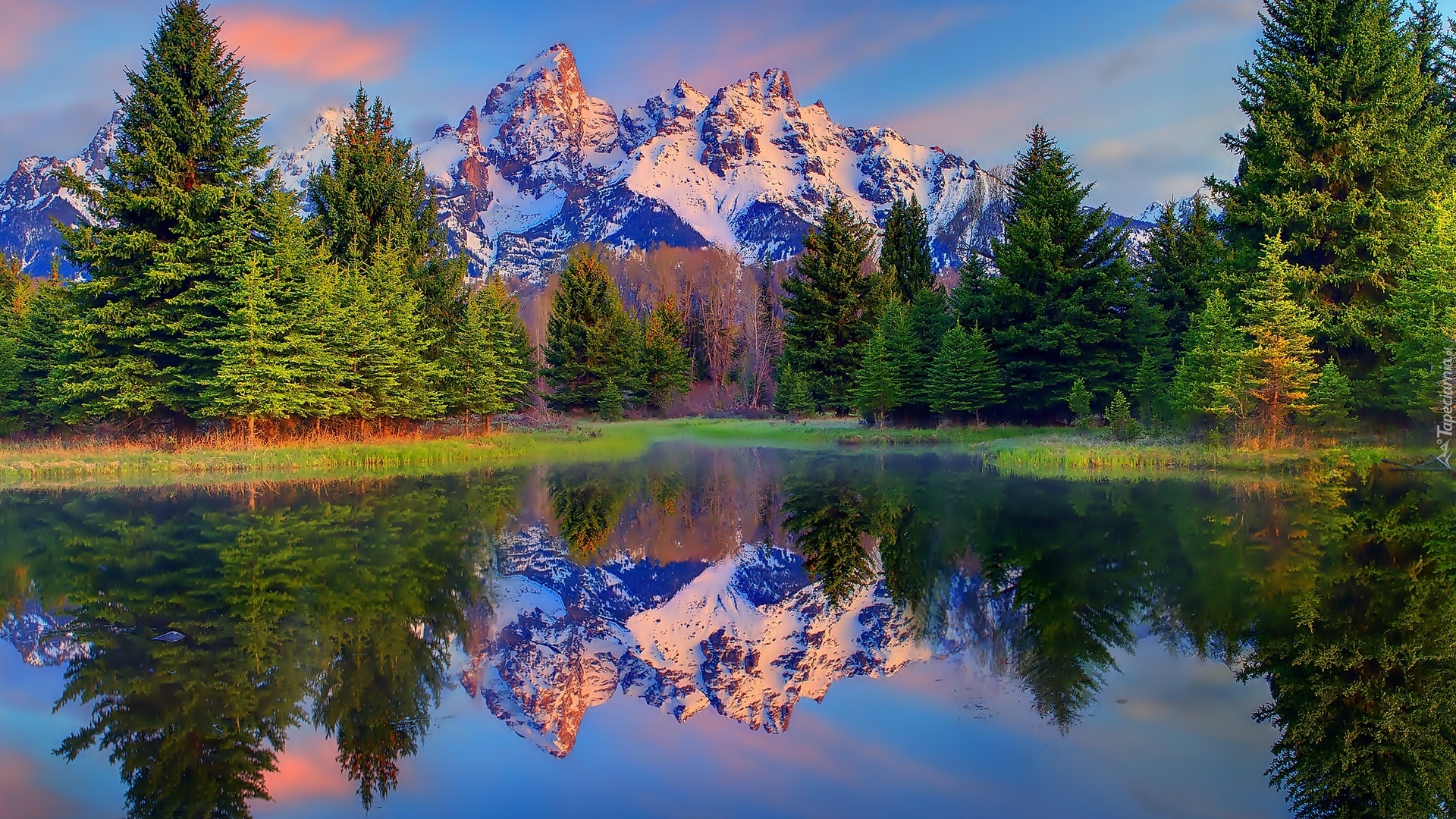 Edytor tapety: Ośnieżone, Góry, Jezioro, Iglasty, Zielony, Las, Odbicie
