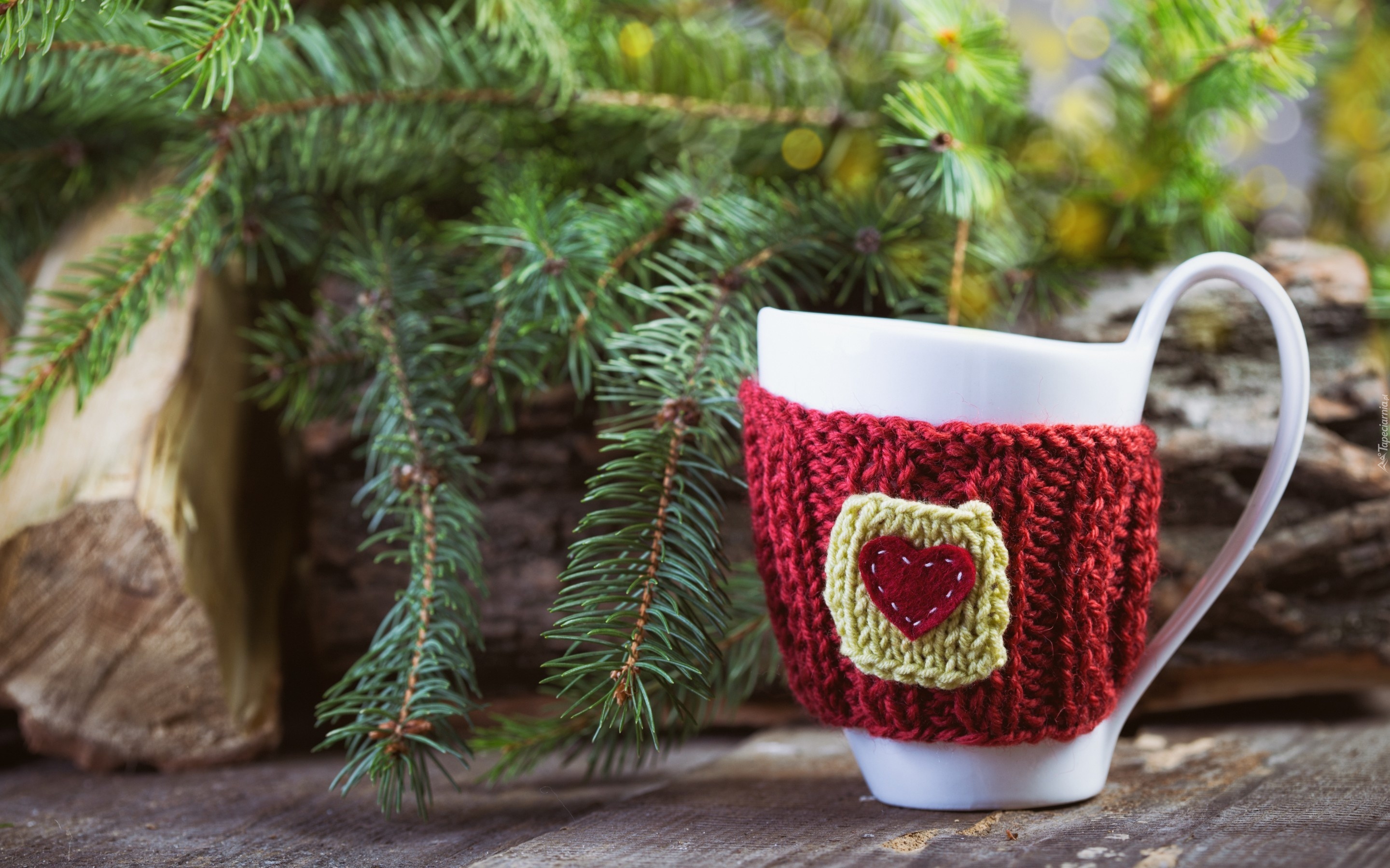 Edytor tapety: Kubek, Dzianina, Gałązki, Świerkowe