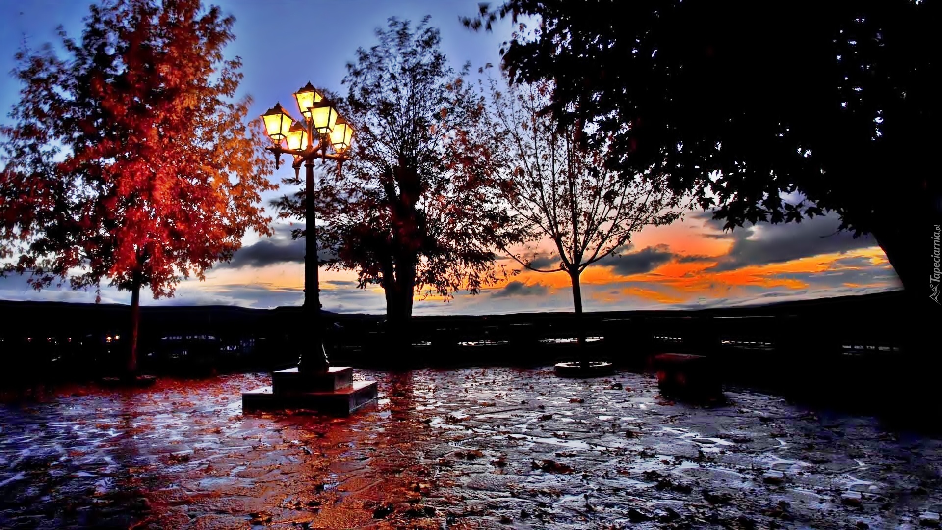 Edytor tapety: Jesień, Park, Zachód Słońca, Latarnia