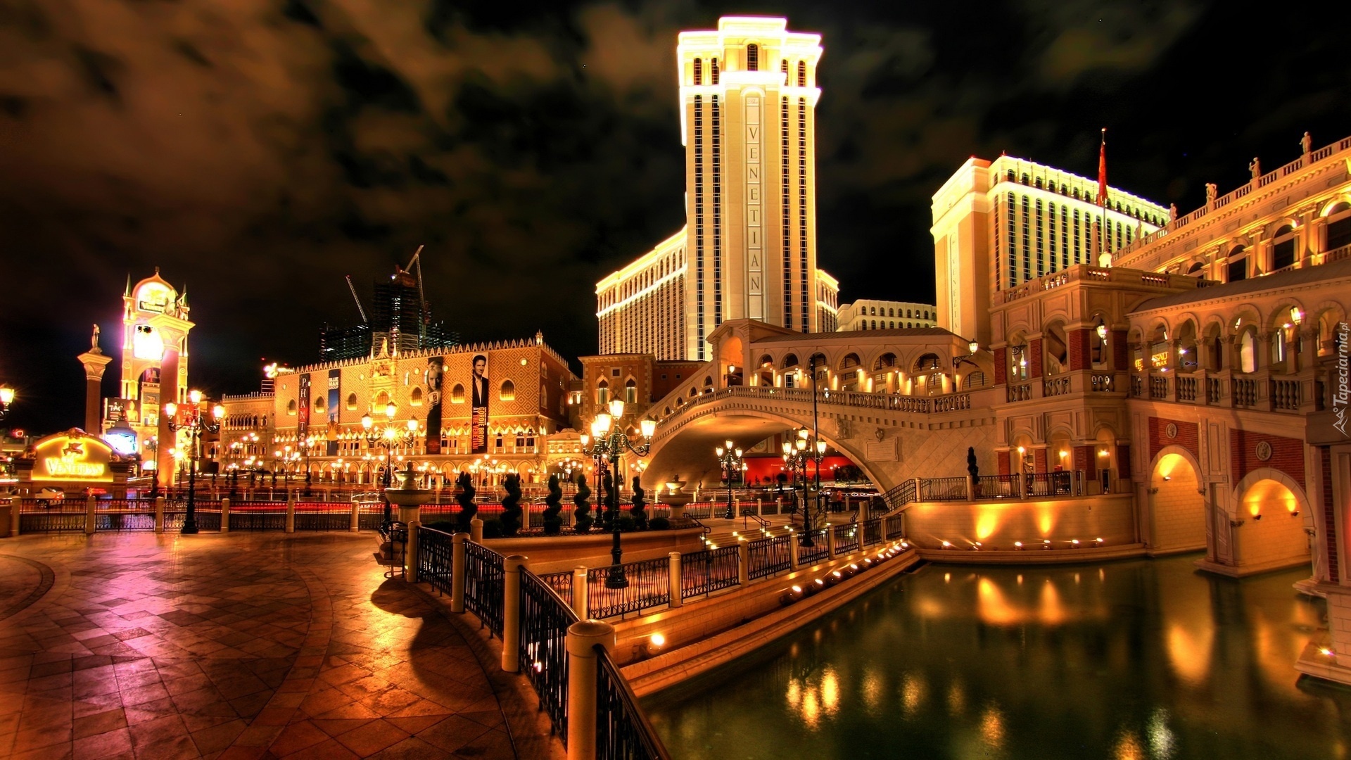 Edytor tapety: Miasto, Noc, Oświetlone, Hotel, Venetian, Ameryka północna, Las Vegas