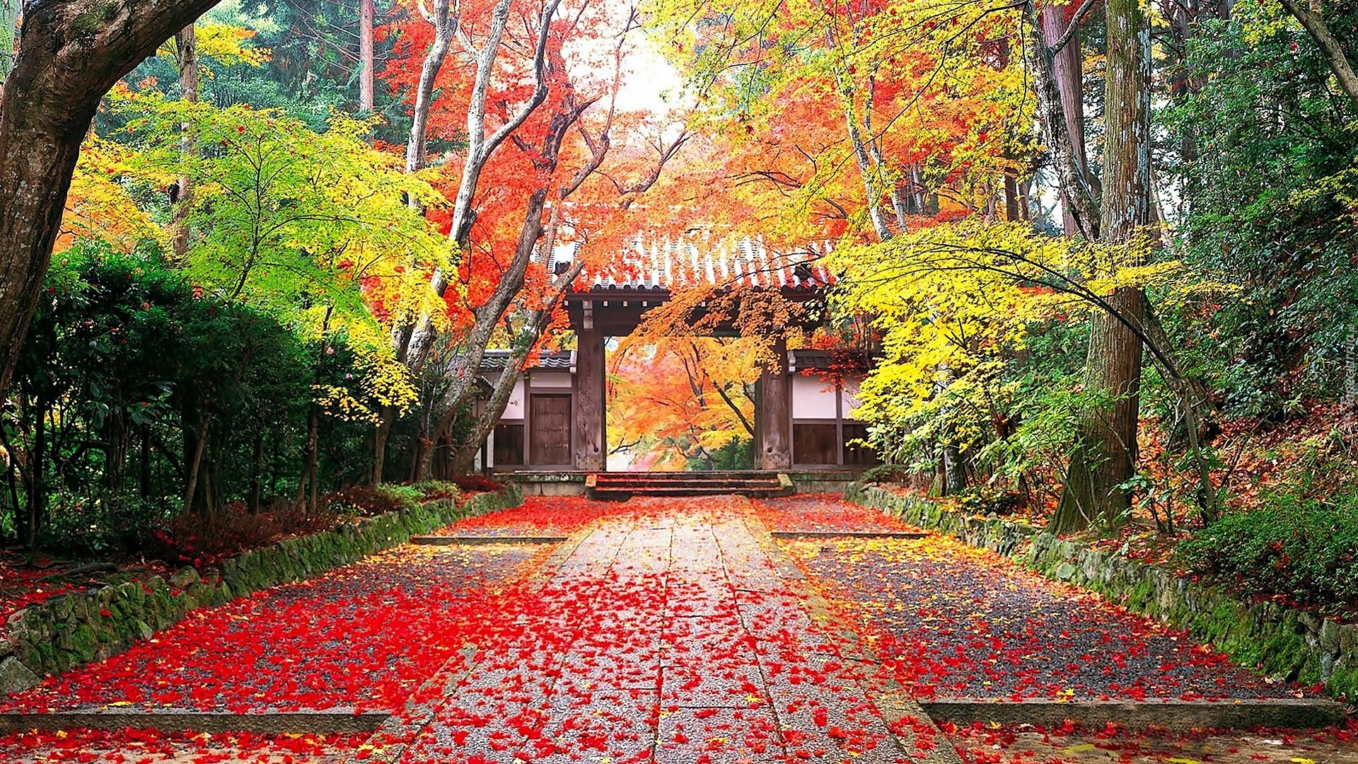 Edytor tapety: Ogród, Japoński, Aleja, Jesień, Opadłe, Liście