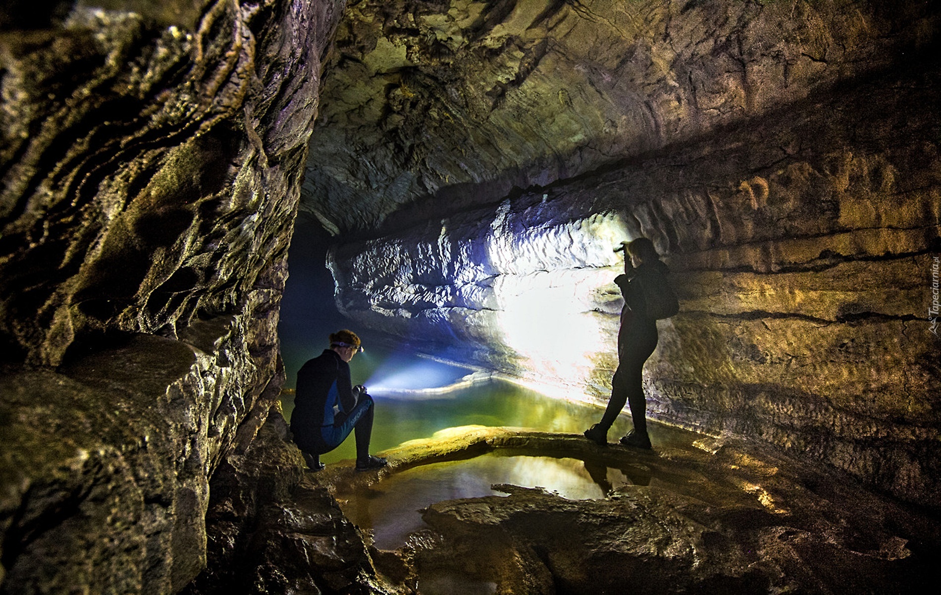 Edytor tapety: Jaskinia, Woda, Ludzie