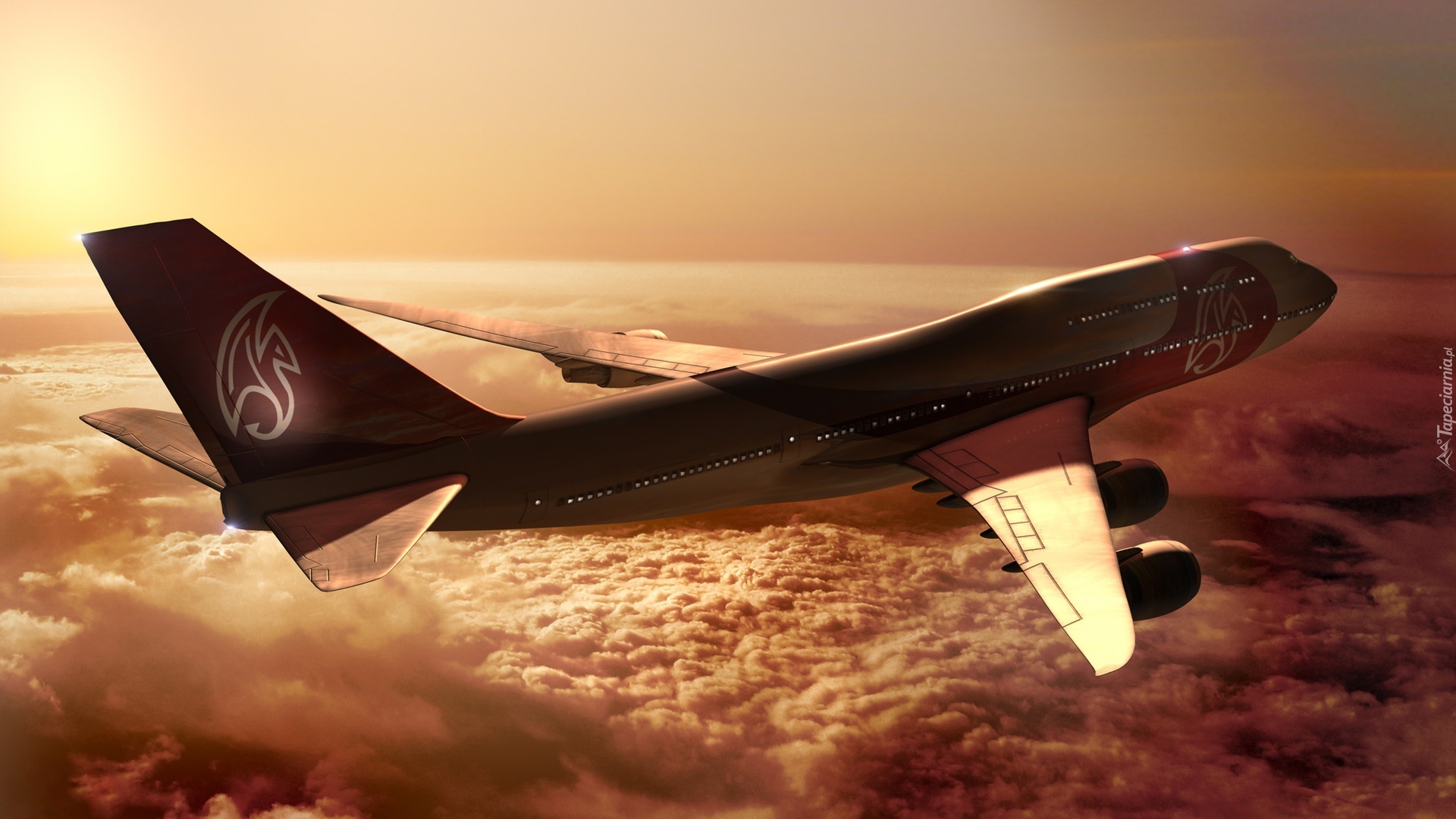 Edytor tapety: Samolot, Chmury, Zachód słońca