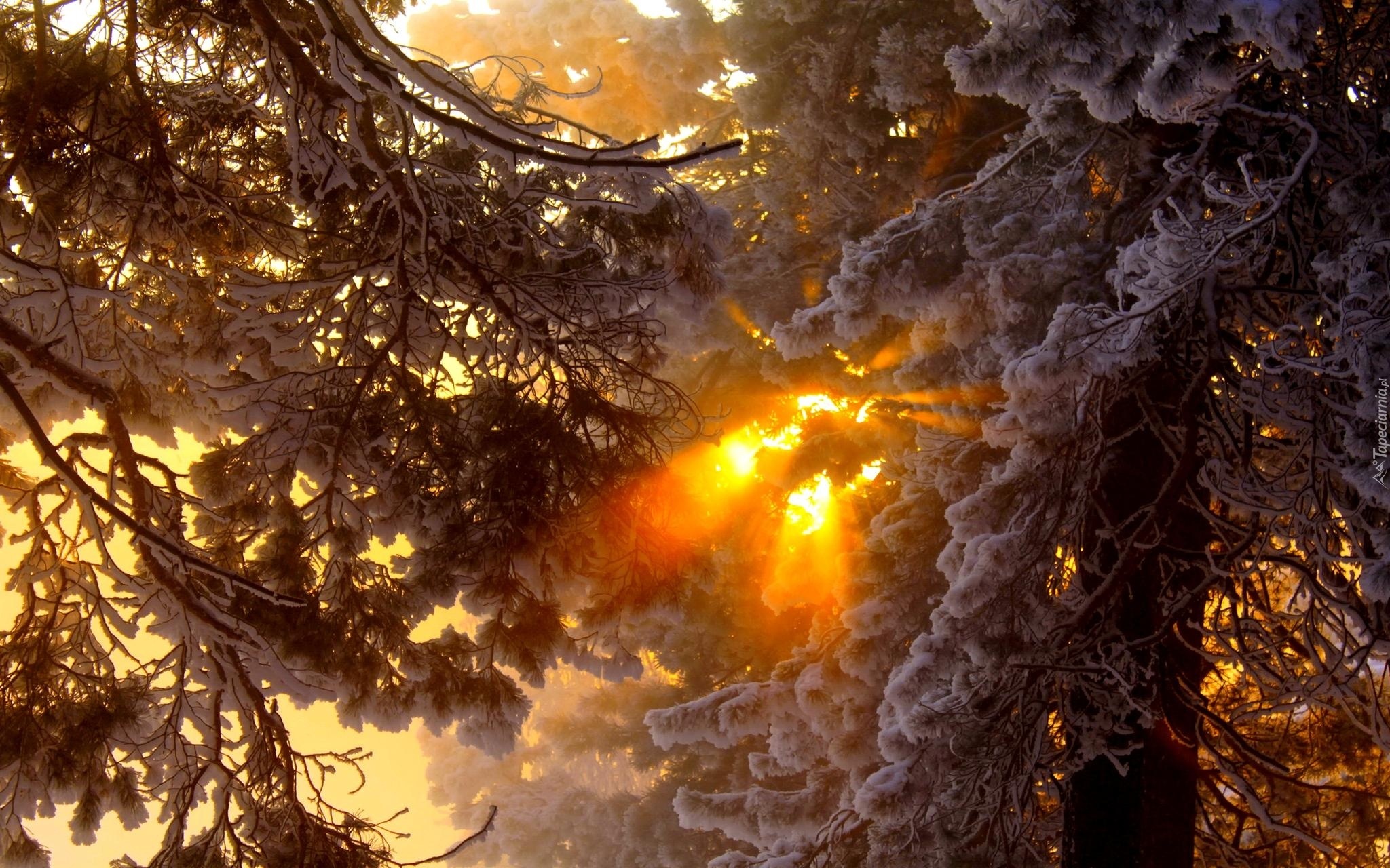 Edytor tapety: Drzewa, Śnieg, Las, Mgła, Przebijające Światło, Zima