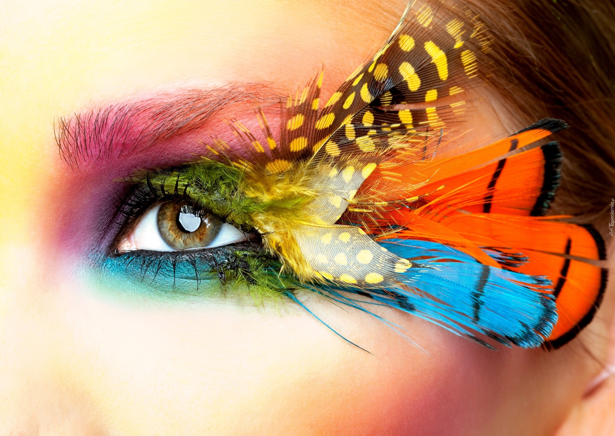 Edytor tapety: Oko, Pióra, Kolorowy, Makijaż