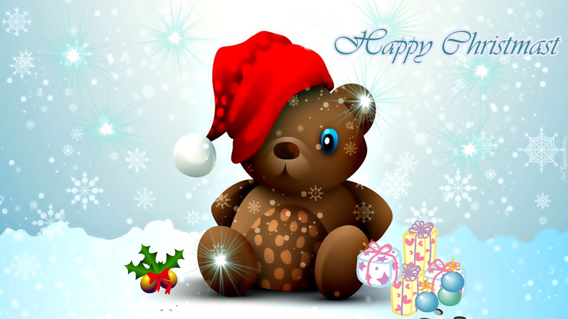 Edytor tapety: Miś, Gwiazdki, Prezenty, Czapka