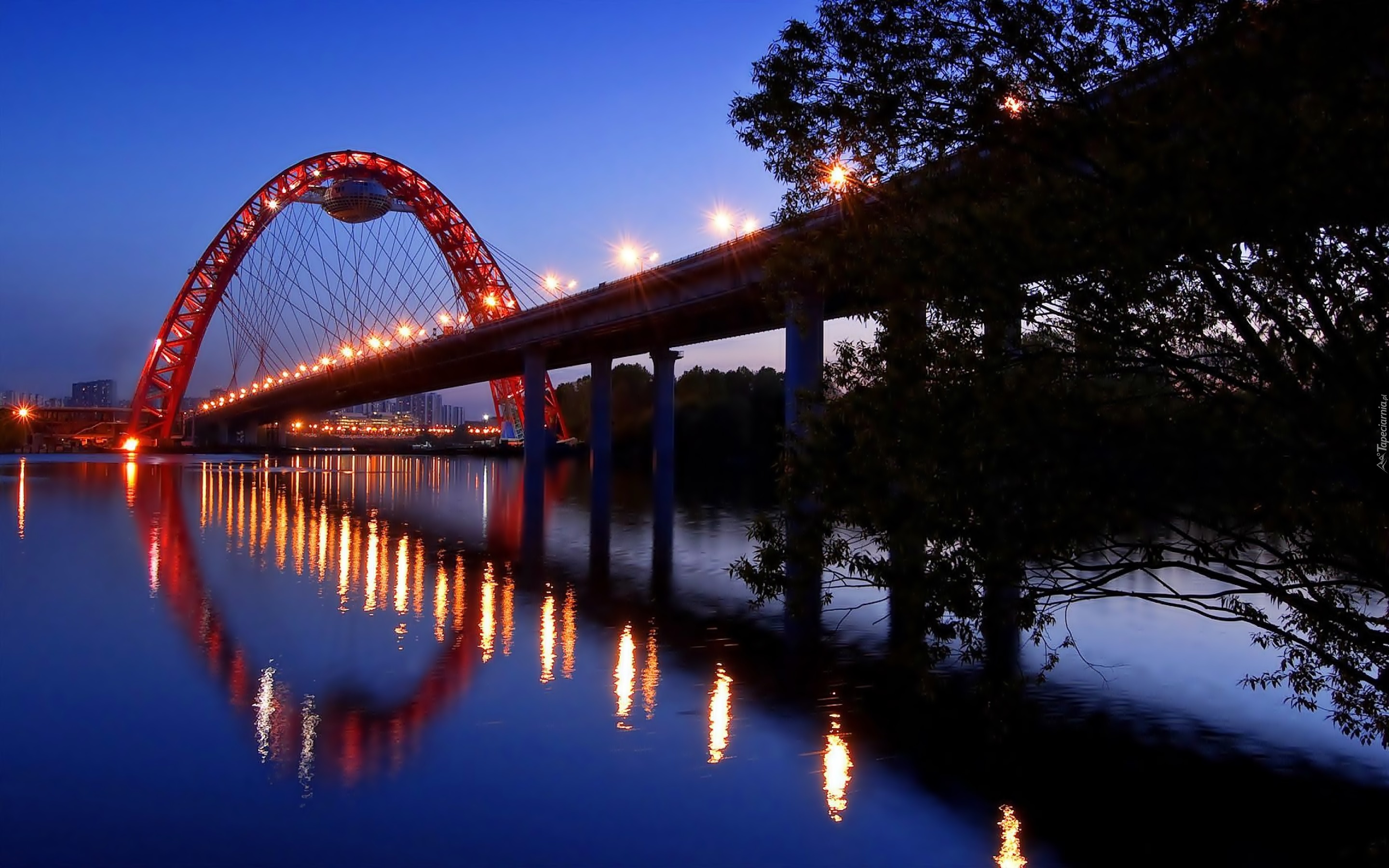 Edytor tapety: Rzeka, Oświetlony, Most, Moskwa, Nocą