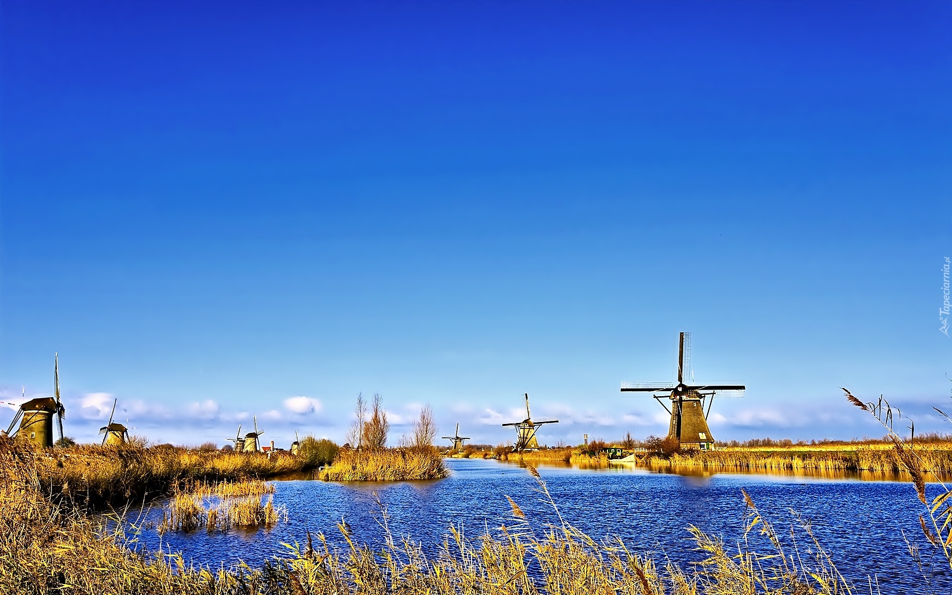 Edytor tapety: Wiatraki, Rzeka, Trzciny, Jesień