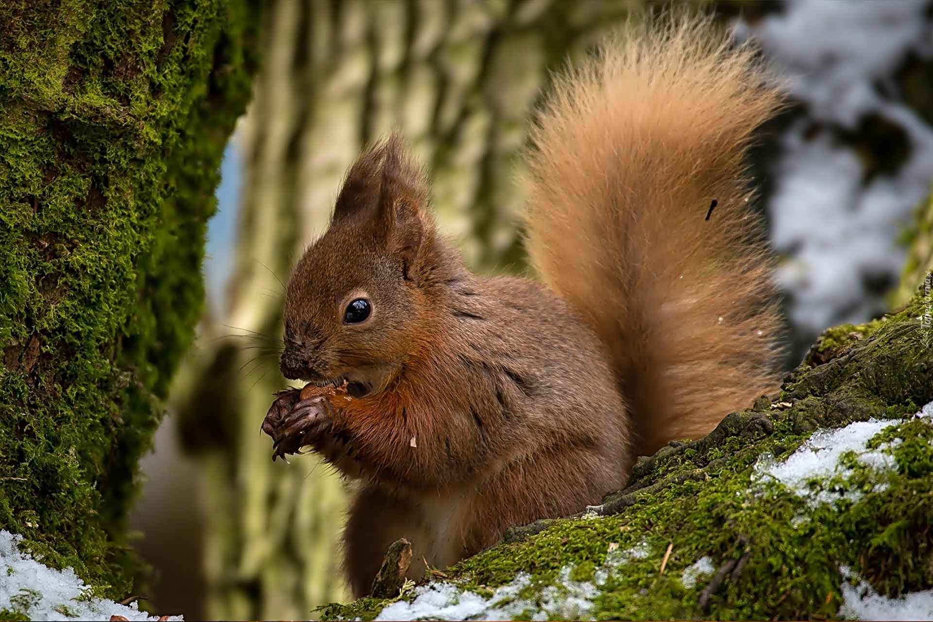 Edytor tapety: Wiewiórka, Omszałe, Konary, Drzew