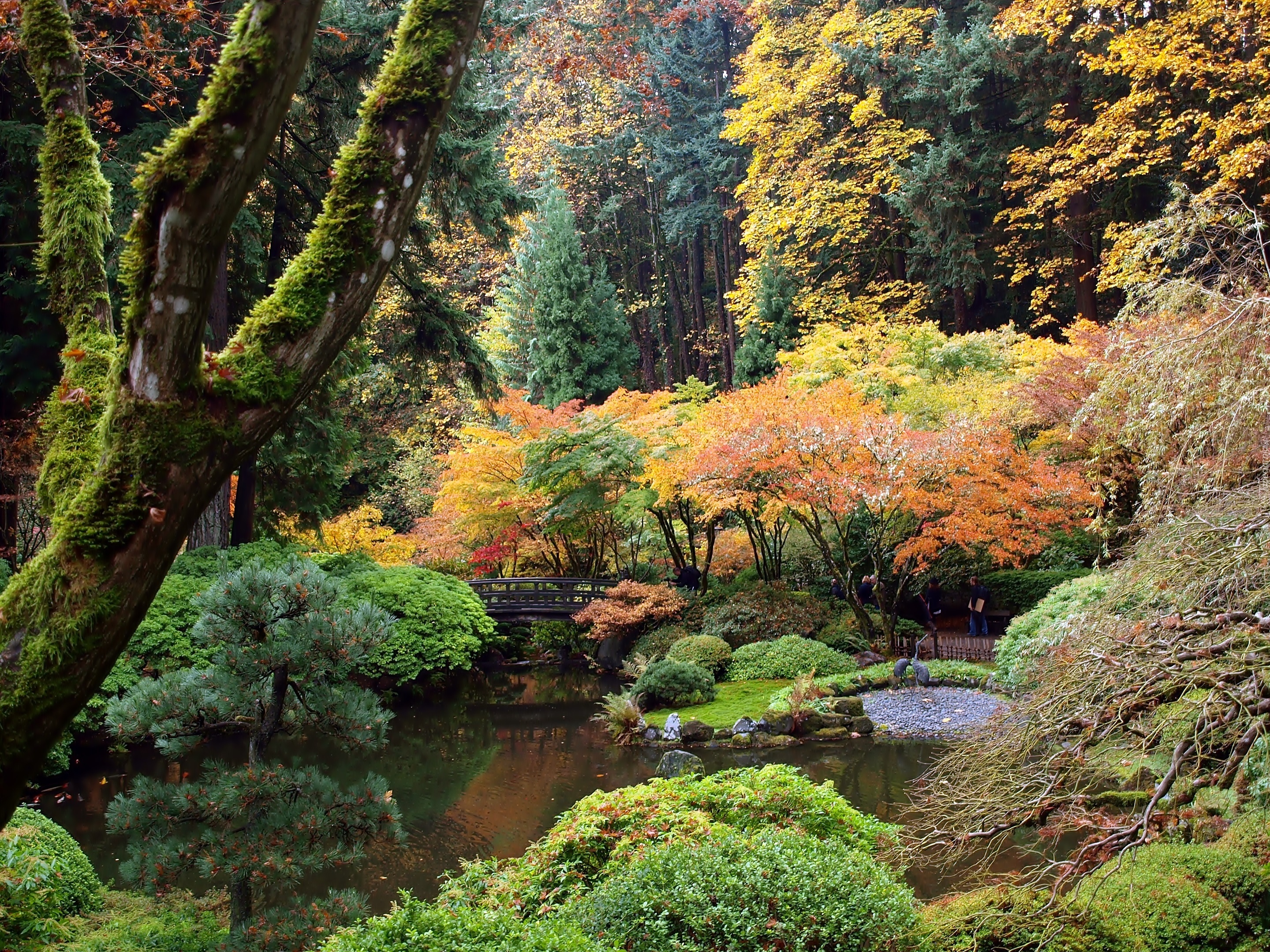 Edytor tapety: Japoński, Ogród, Staw, Mostek, Park, Portland, Oregon