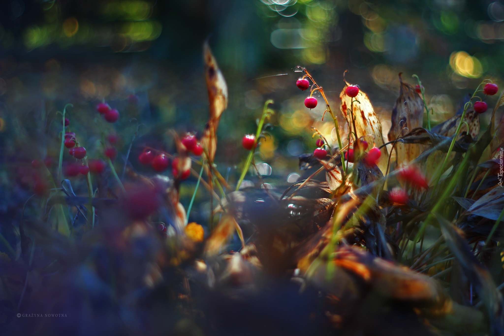 Edytor tapety: Przekwitnięta, Konwalia Majowa, Czerwone, Owoce, Jagody