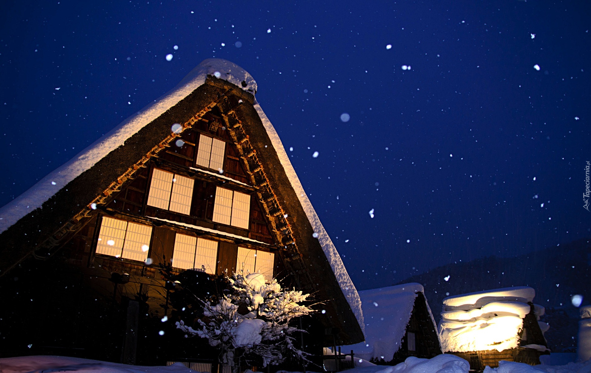 Edytor tapety: Dom, Śnieg, Niebo