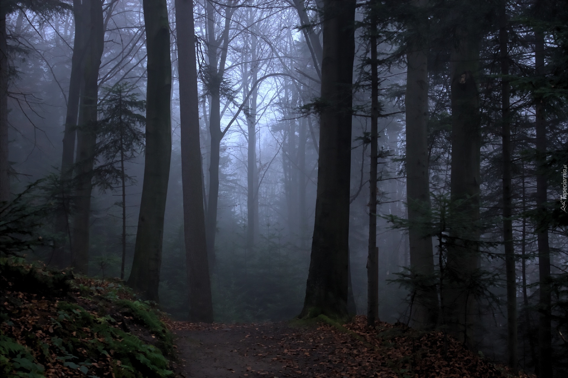 Edytor tapety: Las, Ścieżka, Mgła