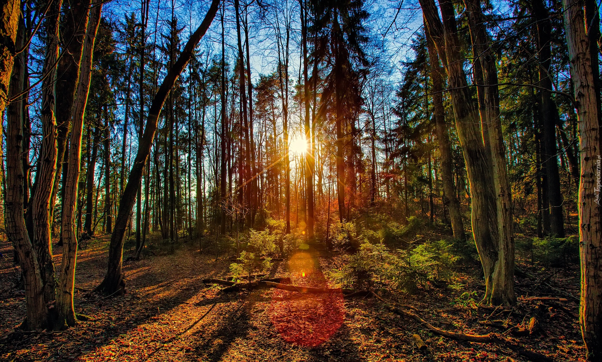 Edytor tapety: Las, Promienie, Słońca, Drzewa