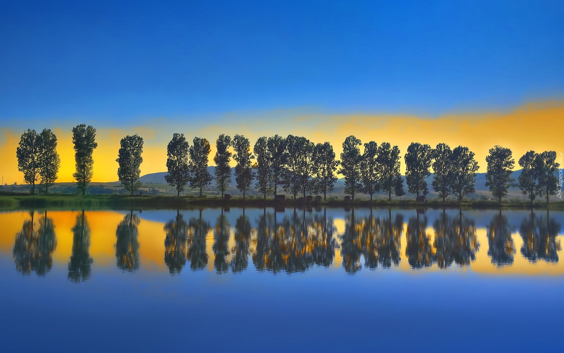 Edytor tapety: Jezioro, Niebo, Drzewa