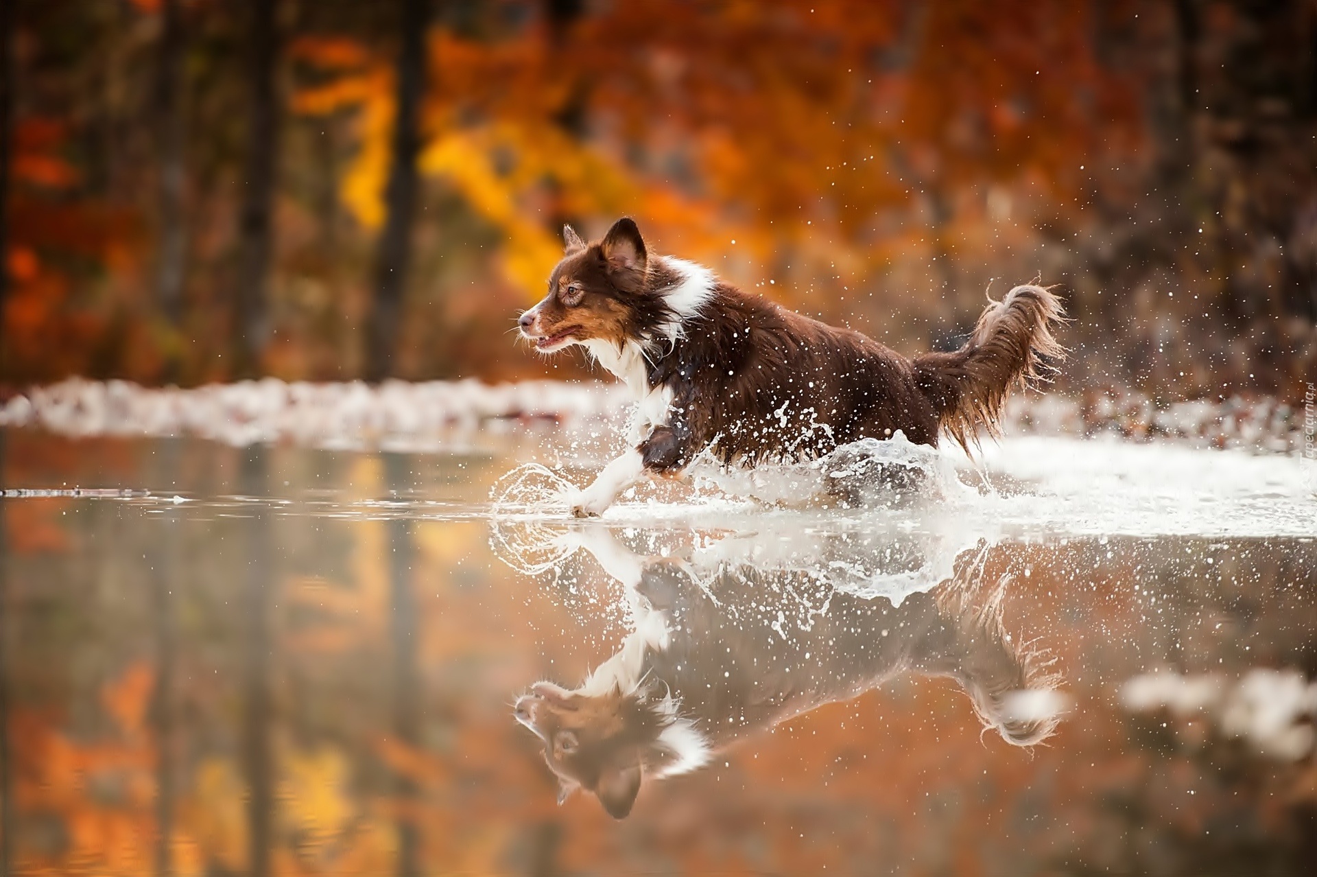 Edytor tapety: Biegnący, Pies, Woda, Rozbryzg, Odbicie