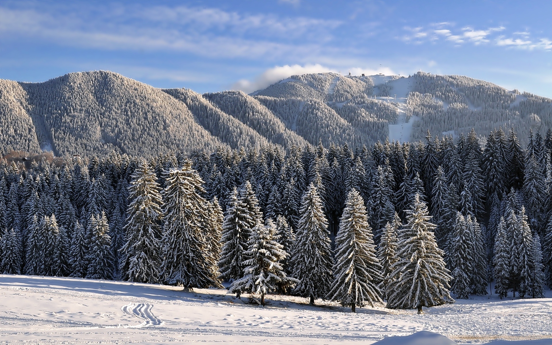 Edytor tapety: Zima, Śnieg, Góry, Lasy, Iglaste, Drzewa