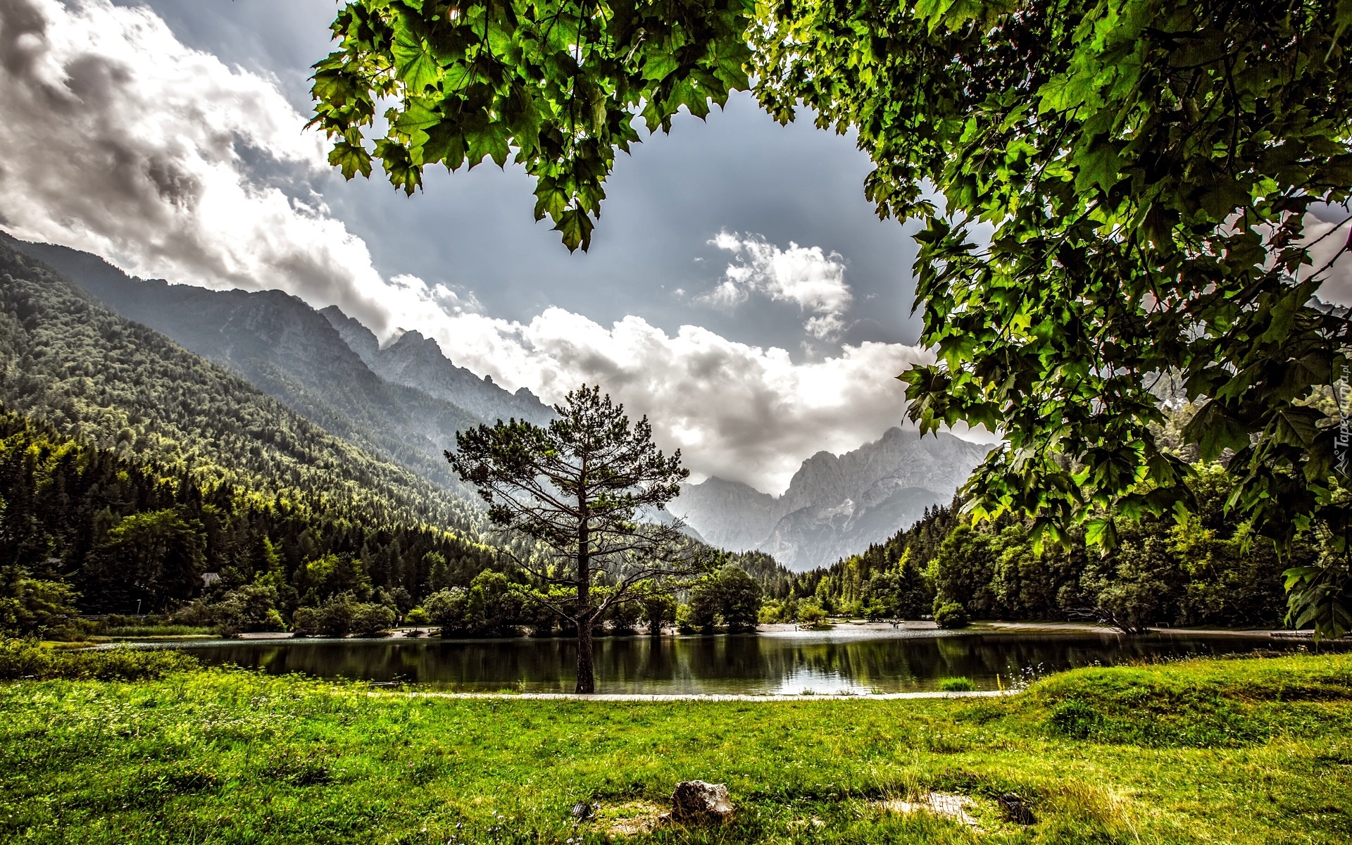 Edytor tapety: Góry, Chmury, Jezioro, Drzewa