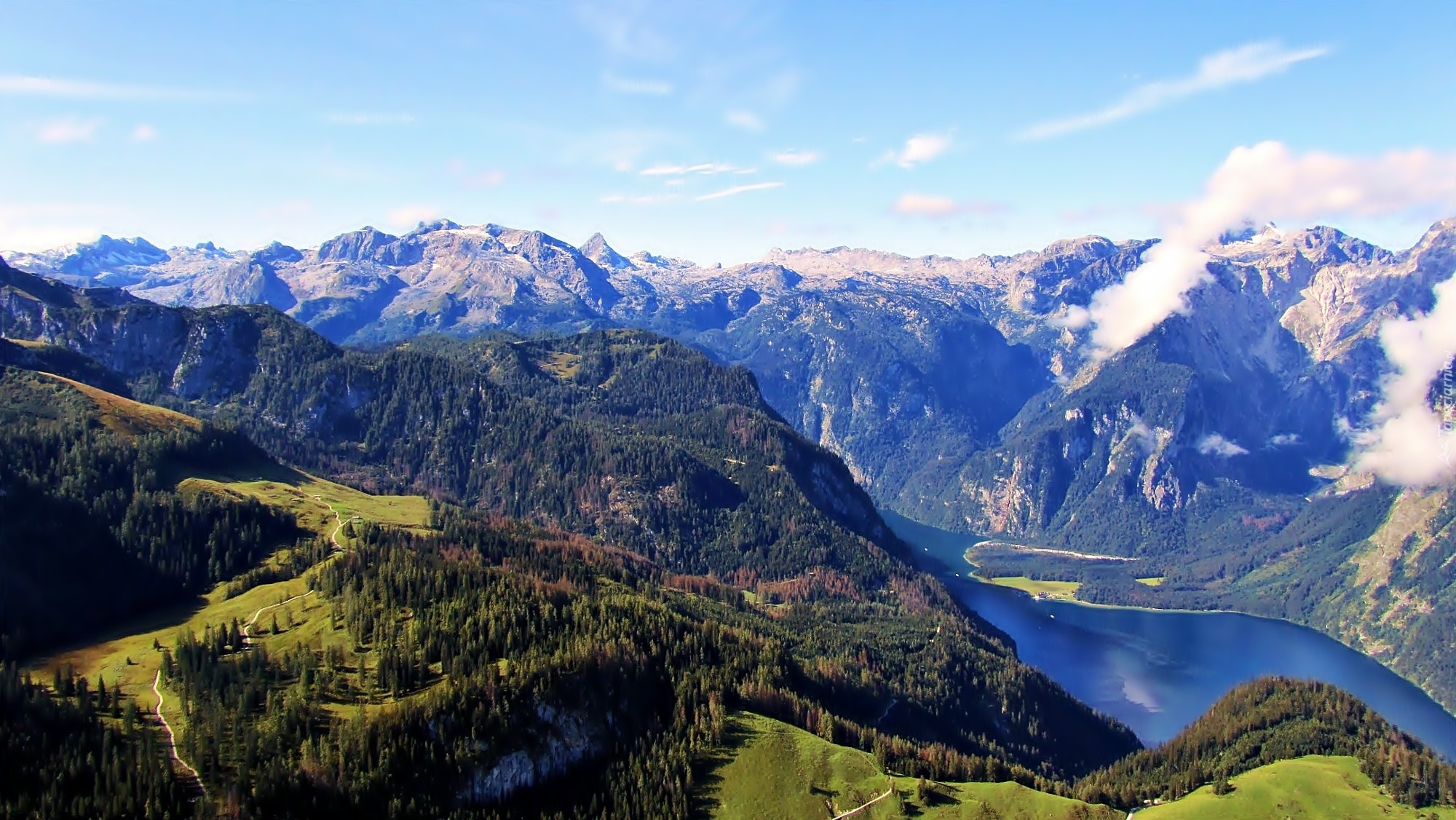 Edytor tapety: Góry, Lasy, Jezioro, Koenigssee, Chmury, Światło, Cień, Bawaria