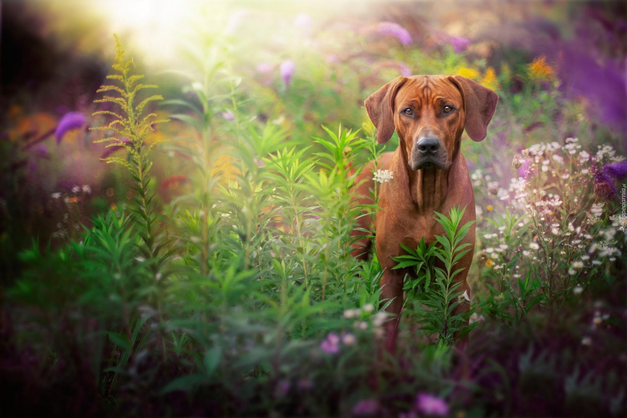 Edytor tapety: Pies, Rhodesian ridgeback, Rośliny, Łąka