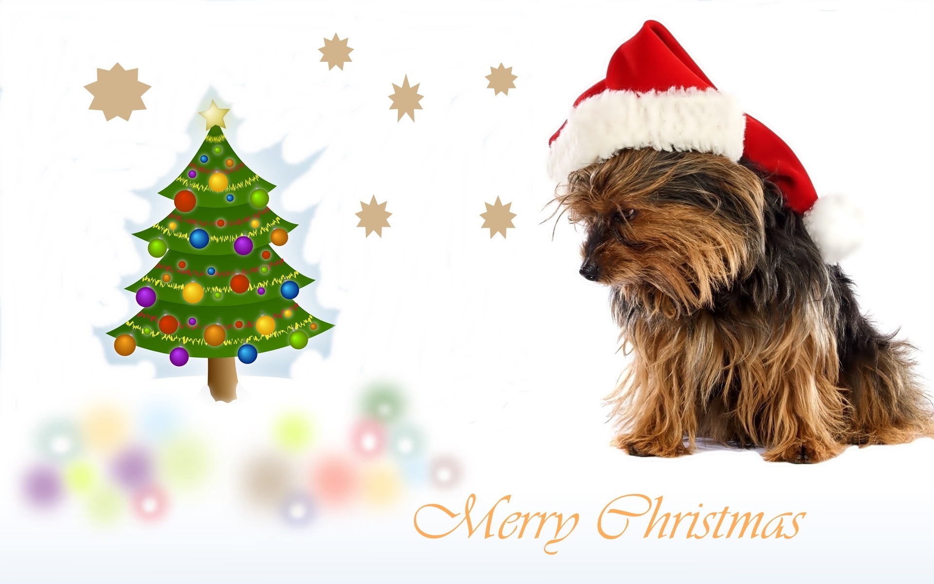 Edytor tapety: Choinka, Gwiazdki, Pies, Czapka, Mikołaja