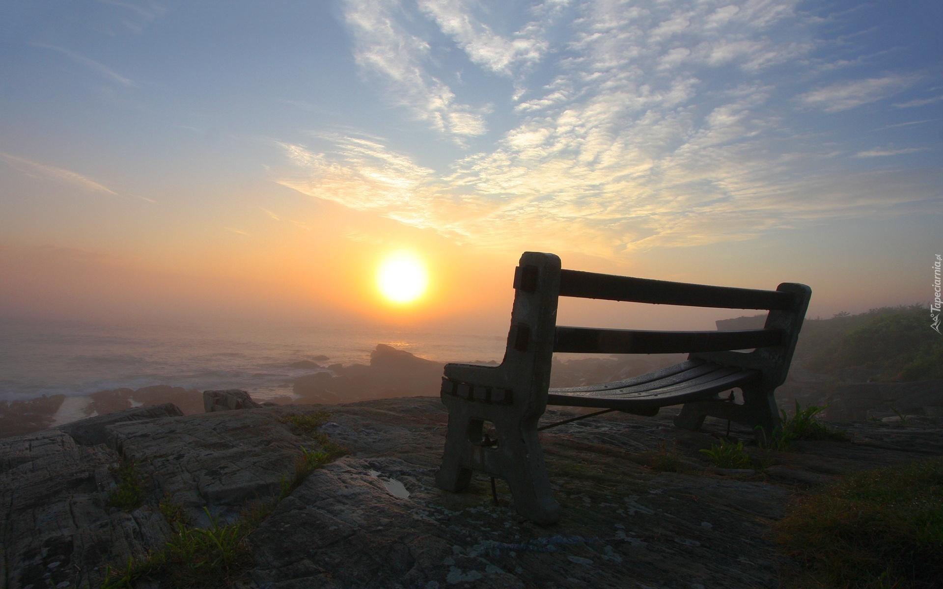 Edytor tapety: Ławka, Niebo, Wschód Słońca