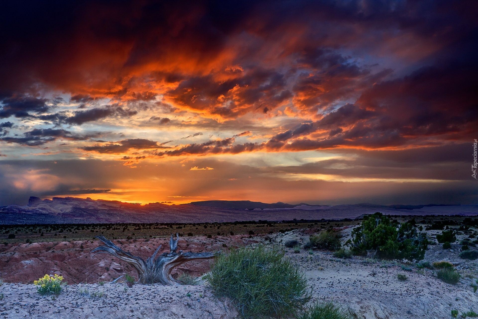 Edytor tapety: Wzgórza, Zachód Słońca, Chmury