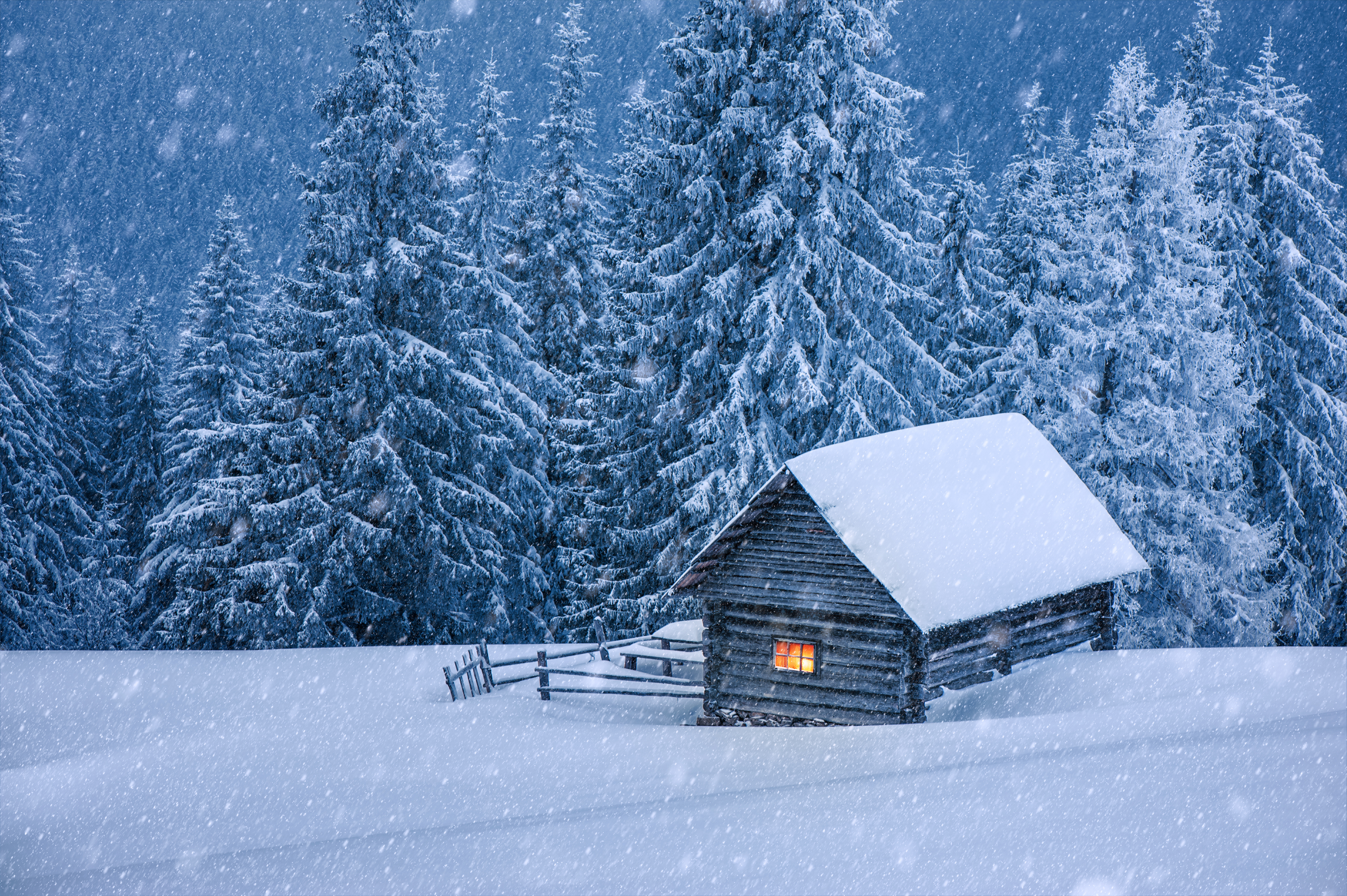 Edytor tapety: Zima, Śnieg, Las, Domek