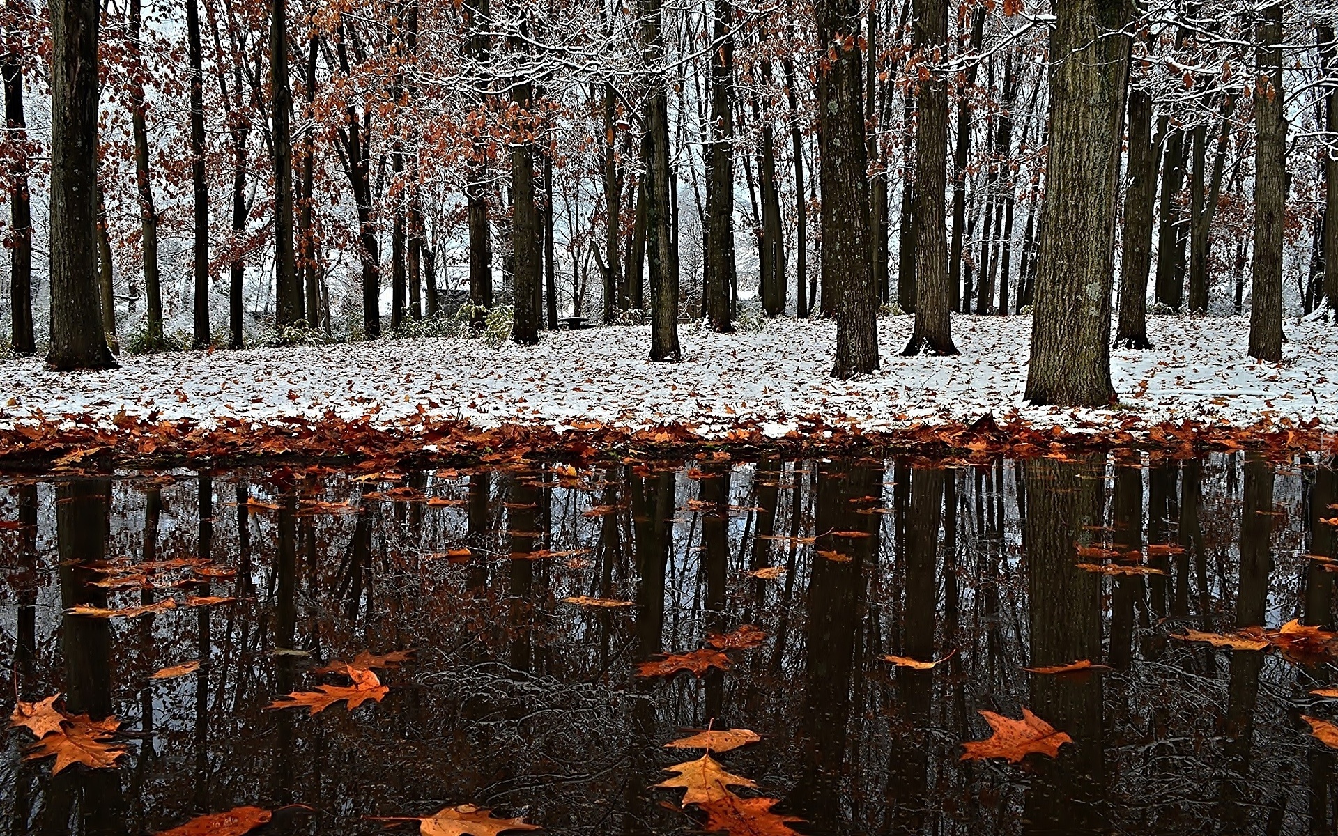 Edytor tapety: Liście, Kałuża, Park, Pierwszy, Śnieg