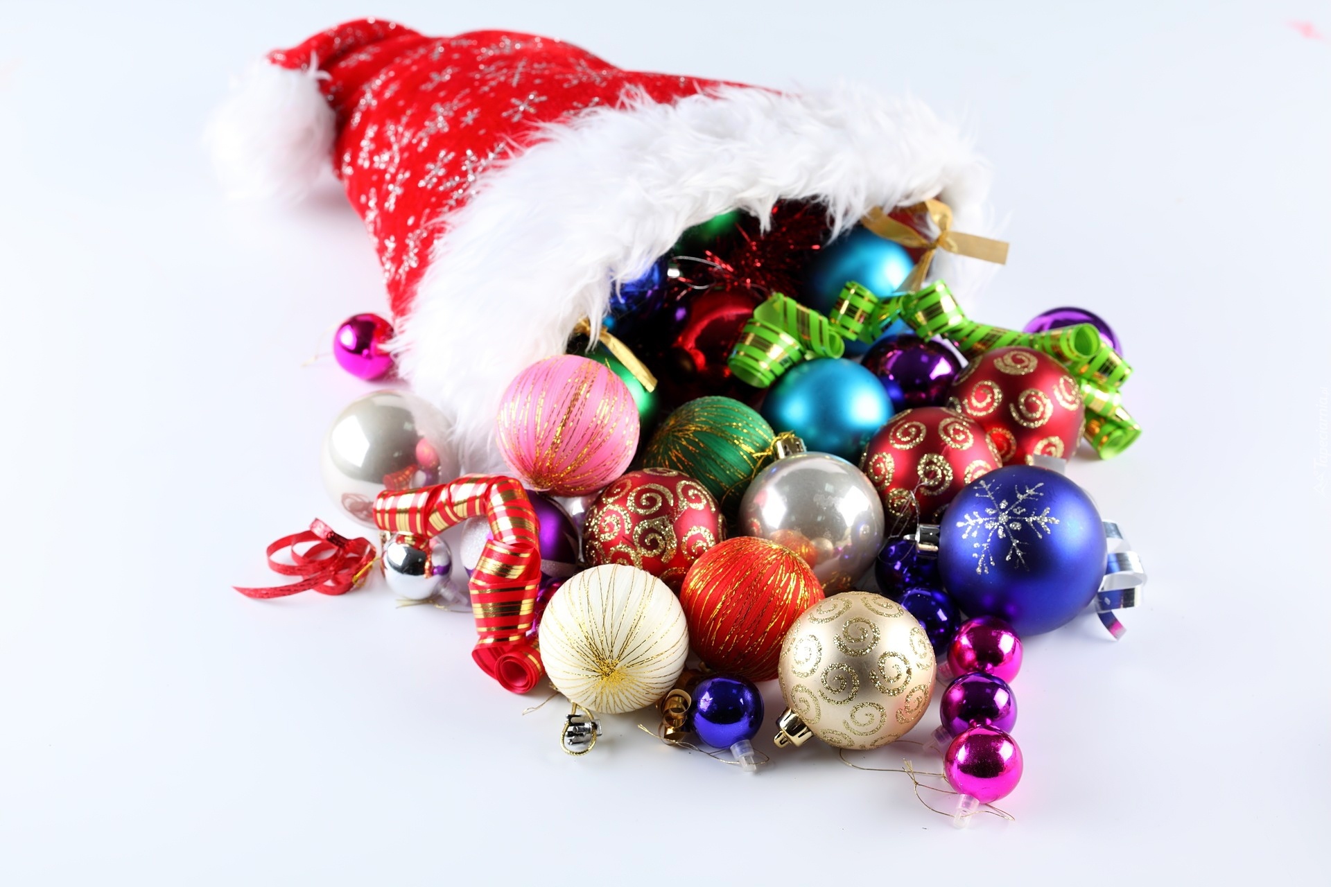 Edytor tapety: Boże Narodzenie, Czapka, Mikołaja, Bombki