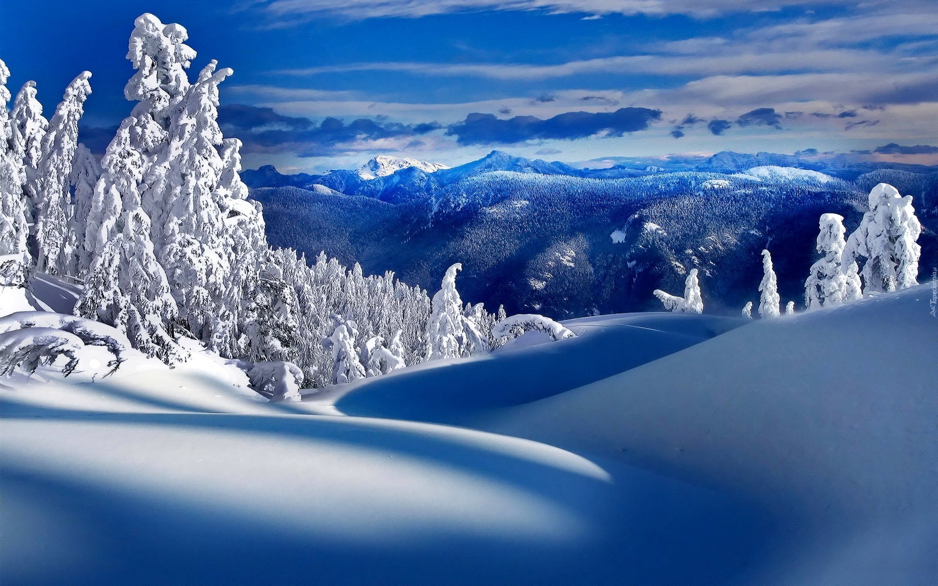 Edytor tapety: Zima, Lasy, Ośnieżone, Drzewa, Wzgórza