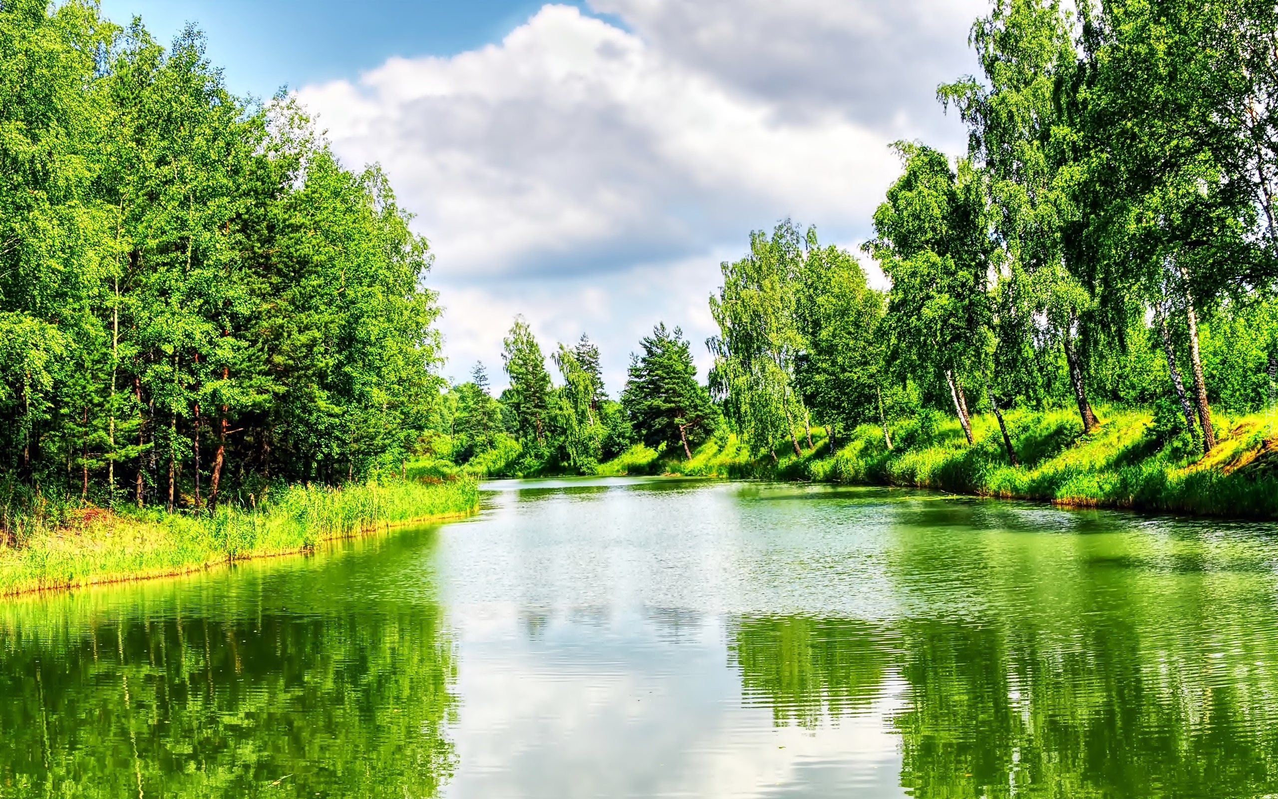 Edytor tapety: Las, Rzeka, Chmury, Odbicie