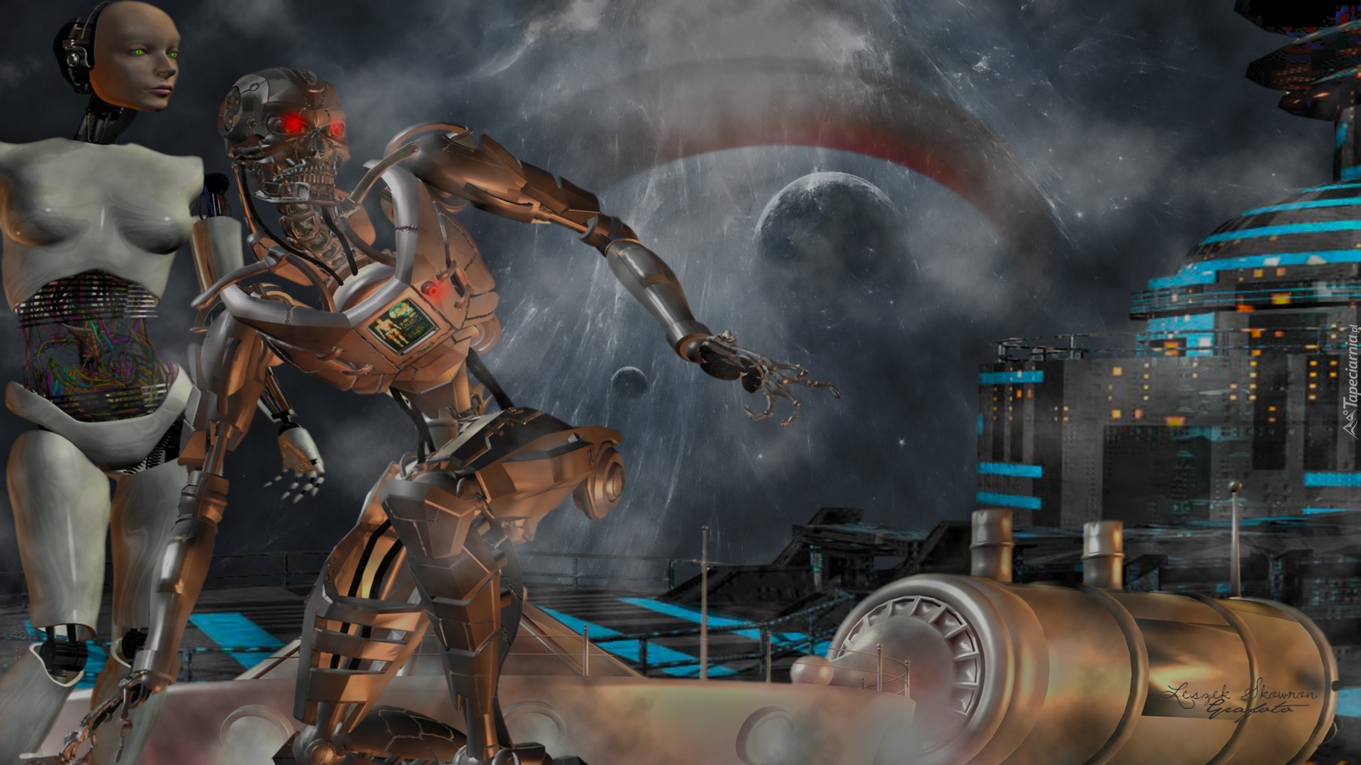 Edytor tapety: Planeta, Oczy, Maszyna, Kable, Światło, Fantasy