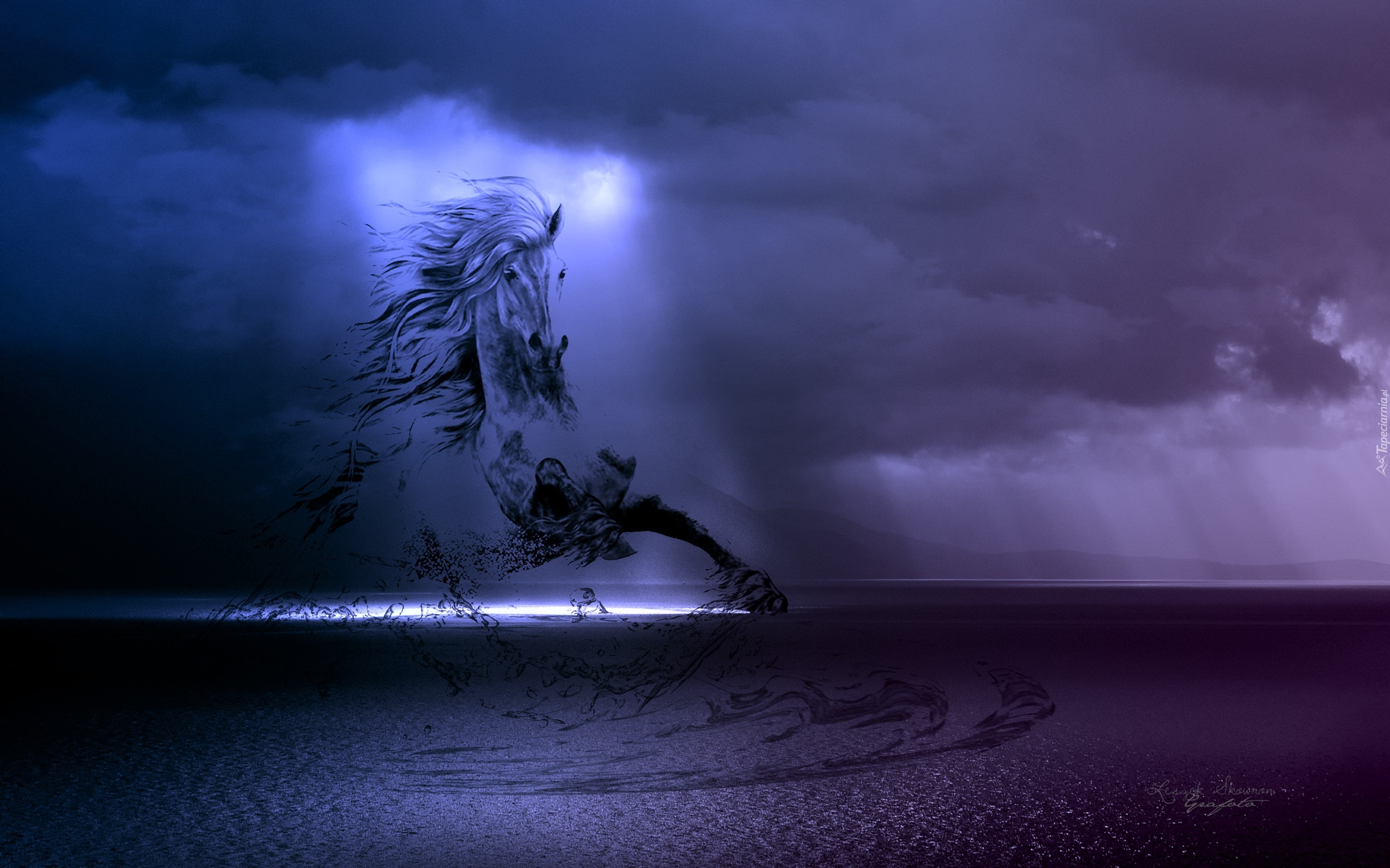 Edytor tapety: Chmury, Grzywa, Koń, Woda, Oczy, Blask, Fantasy